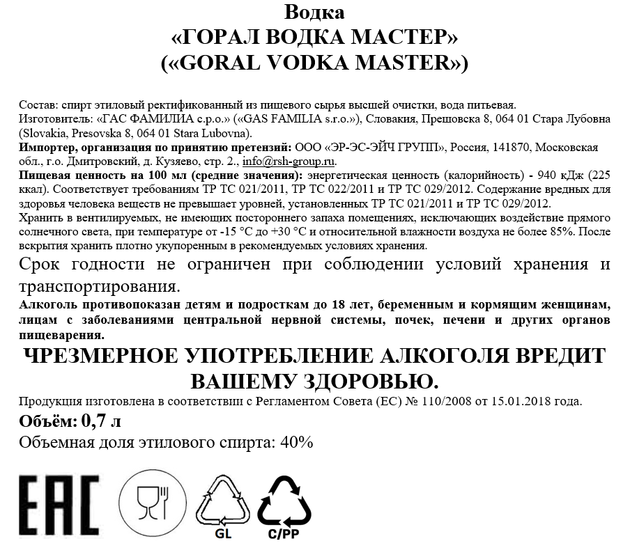 Водка Goral Master, 0.7л