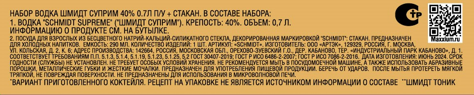 Водка Schmidt Supreme + стакан в подарочной упаковке, 0.7л