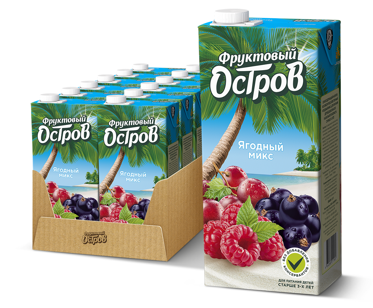 Современный дизайн упаковки создает атмосферу отдыха на тропическом острове. Вкусовая палитра бренда включает как классические фруктовые сочетания, так и уникальные экзотические миксы. Рекомендовано для питания детей старше 3-х лет. Без консервантов и красителей.