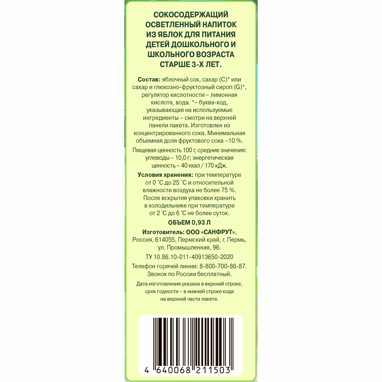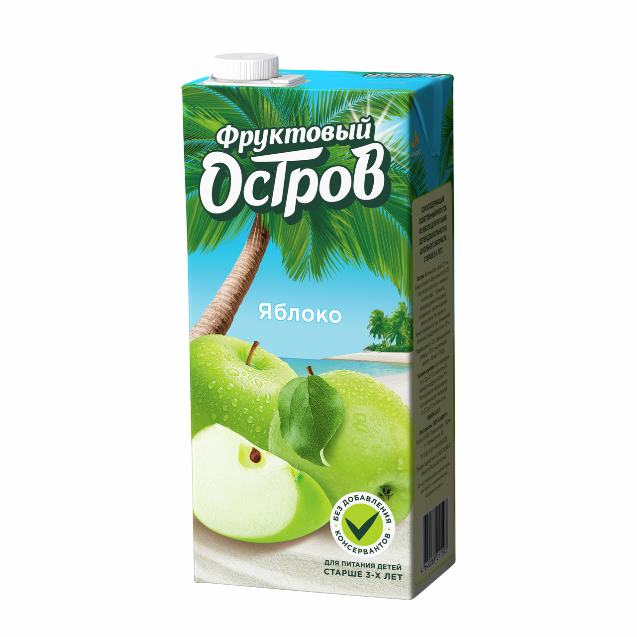 Напиток Фруктовый остров сокосодержащий яблоко, 930мл изготовлен из концентрированных соков и пюре. Минимальная объёмная доля фруктового сока и пюре: 50 %. Не содержит консерванты, что особенно важно для правильного и здорового питания. Напиток содержит отборные фрукты, которые поставляются на завод с лучших плантаций мира. Стерилизован и асептически упакован.