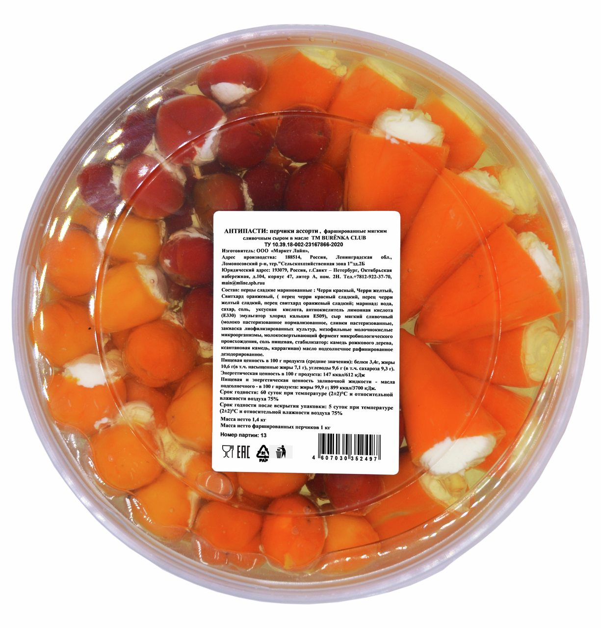 Антипасти Burenka Club перчики ассорти со сливочным сыром, 1.4кг