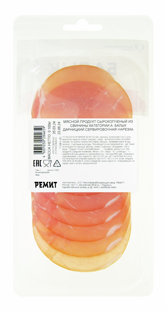 Балык из свинины Ремит Дарницкий сырокопченый нарезка, 100г