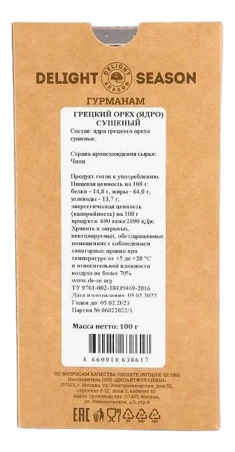 Грецкий орех Delight Season сушеный очищенный, 100г