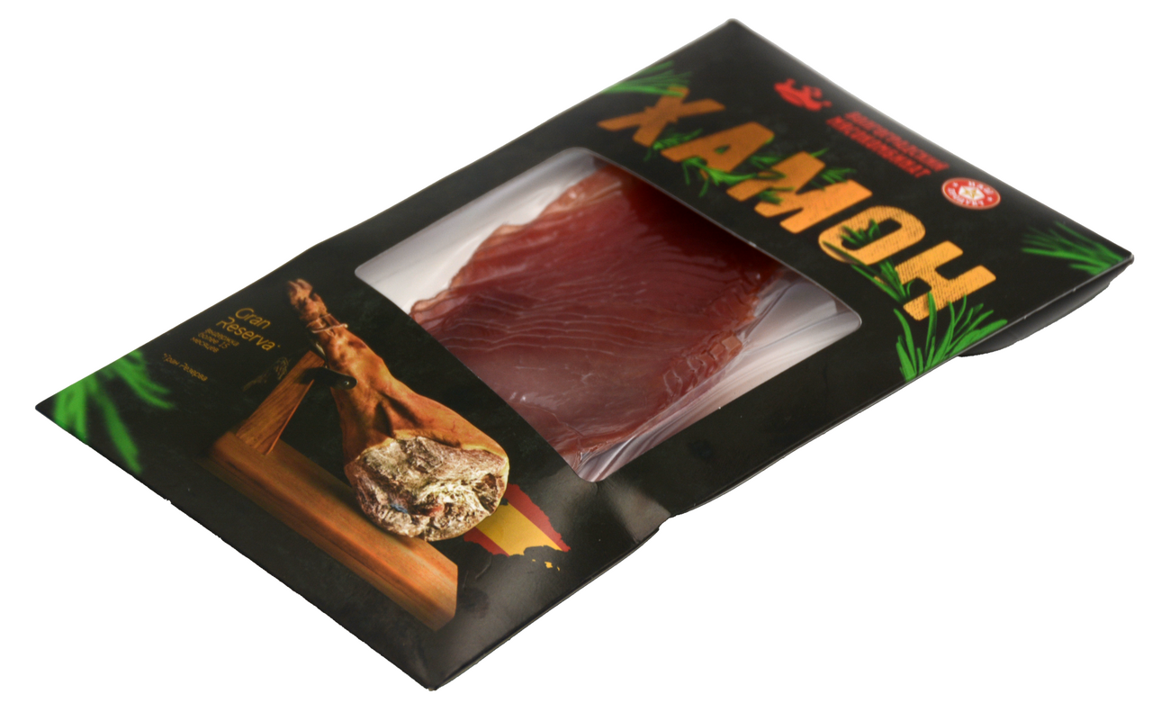 Нарезка из сыровяленого свиного окорока, изготавливаемого по строго определенной технологии из взятой целиком задней ноги животного, национальный испанский деликатес. Это уникальный мясной деликатес. Для его производства используются тщательно отобранные свиные окорока и оригинальная методика приготовления, включающая засаливание, сушку и дозревание в специальных погребах. Готовый хамон нарезается на тонкие ломтики и упаковывается под вакуумом. Традиционно хамон подается в качестве закуски к аперитиву, его сервируют с дыней и свежим хлебом.