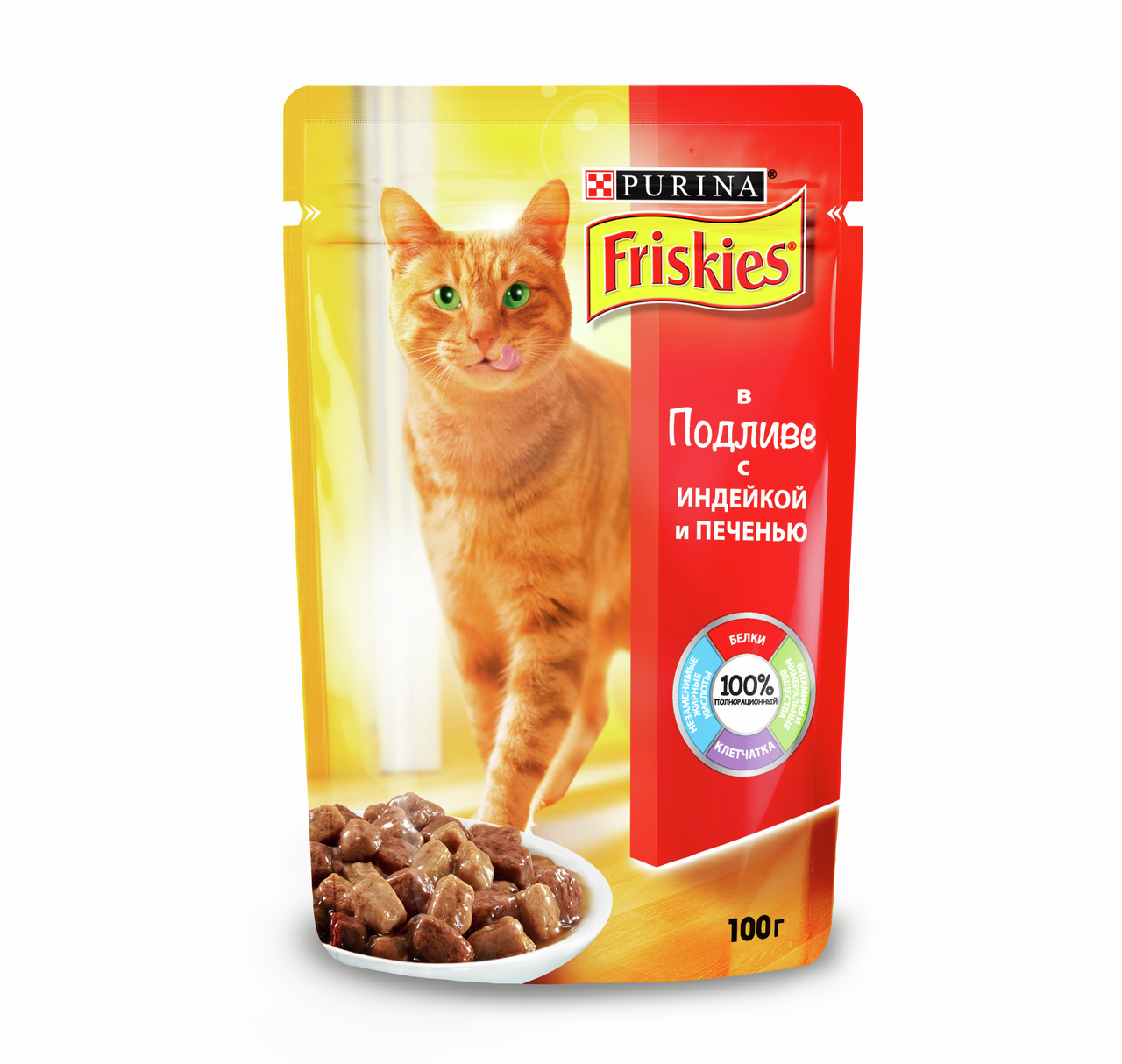 Корм для кошек FRISKIES в подливе с индейкой и печенью, 100 г