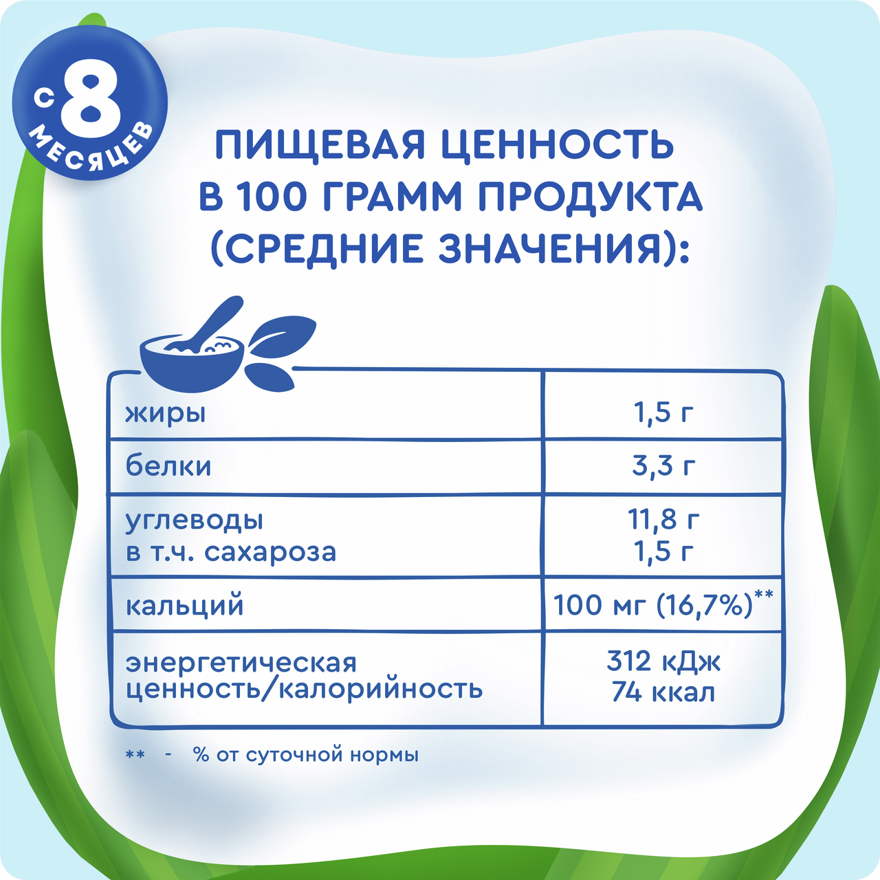 Молоко восстановленное, мука пшеничная, пюре яблочное концентрированное, хлопья овсяные, молоко овсяное, сахар, сок яблочный концентрированный, пюре из ежевики, пюре из малины, ароматизаторы натуральные, регулятор кислотности цитрат калия 3-замещенный.