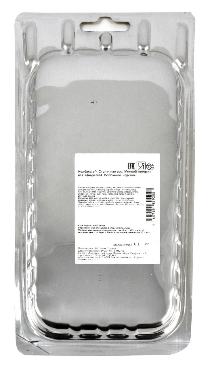 Столичная сырокопченая ГОСТ - советский бренд и лидер по популярности у отечественных покупателей. Говядина, свинина и шпик приправлены коньяком, который придает классическому вкусовому сочетанию - особенную благородную нотку. Колбаса имеет контрастный срез из мелкой мозаики и плотную структуру - результат длительного созревания и холодного копчения мясного фарша.