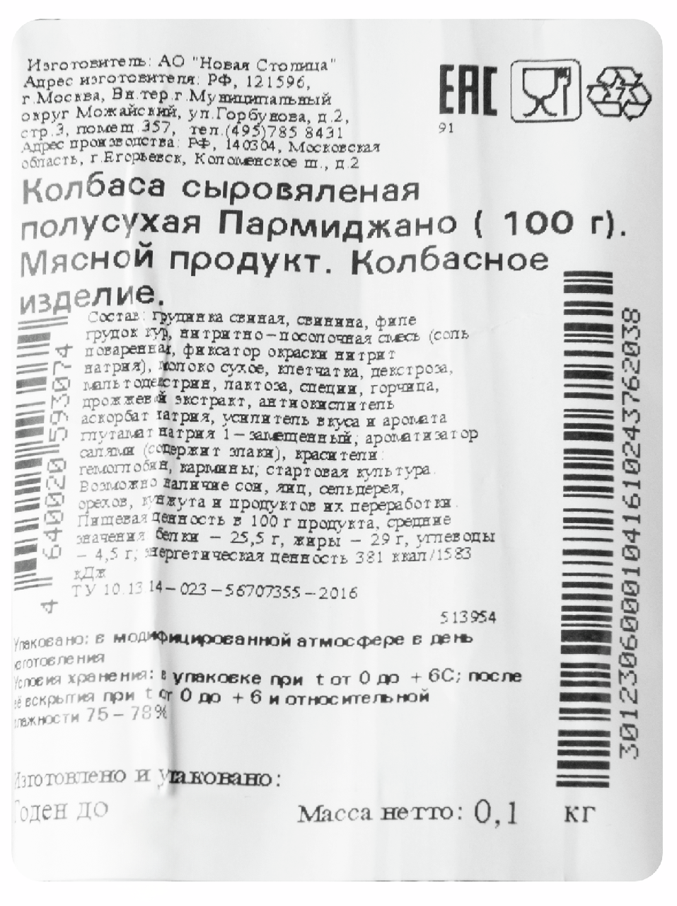 Колбаса Пармиджано Егорьевская сыровяленая полусухая, 100г