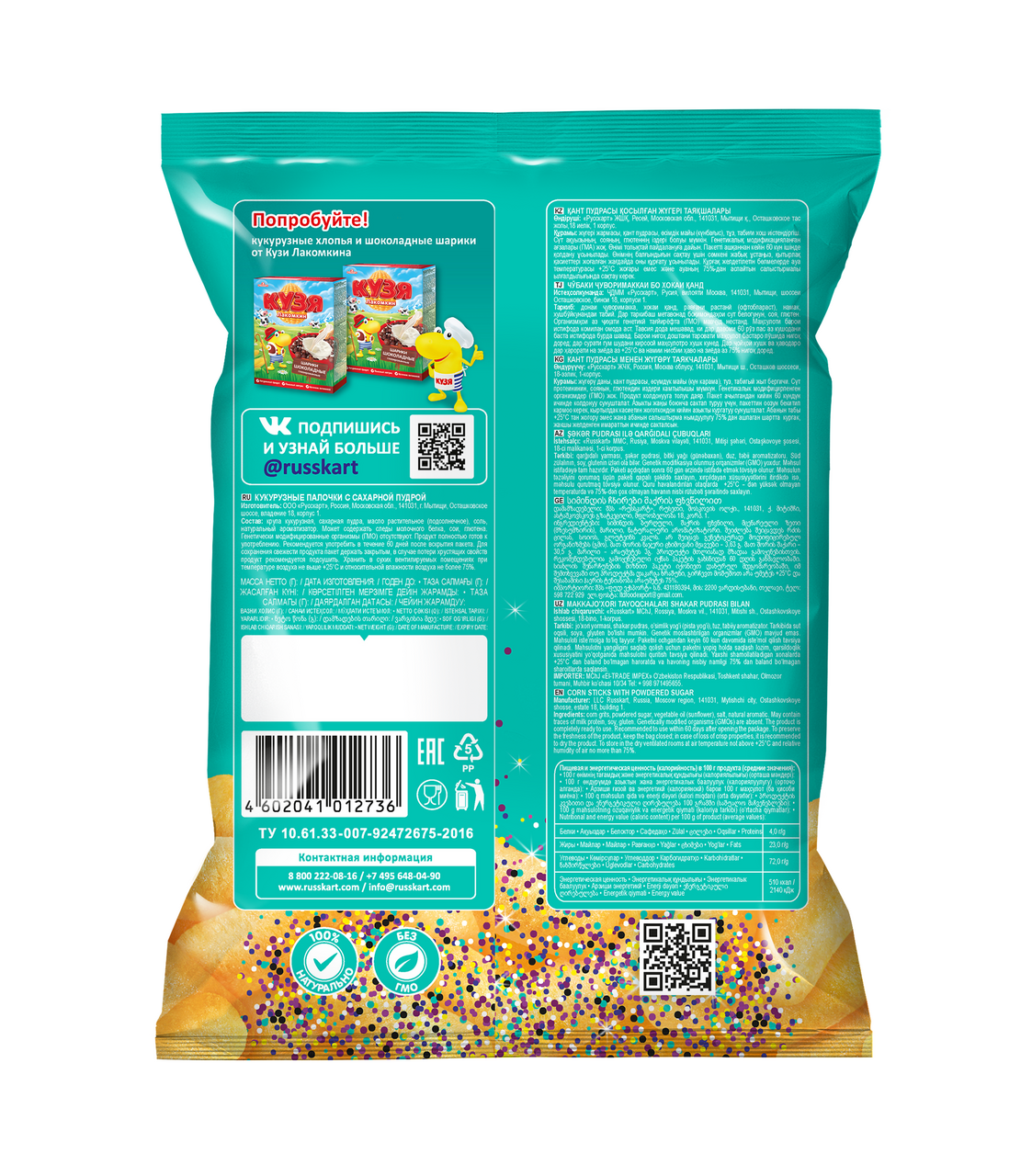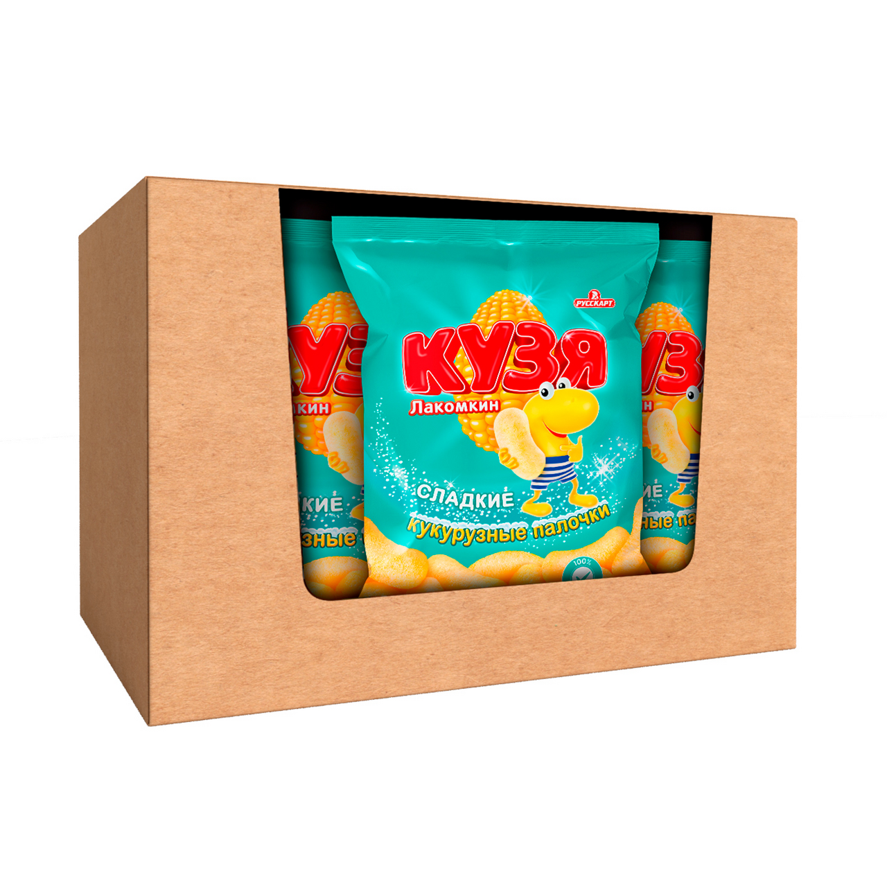 Палочки Кузя Лакомкин кукурузные с сахарной пудрой, 100 г - это сладкие воздушные кукурузные палочки, приготовленные из отборного отечественного сырья: кукурузы, подсолнечного масла и сахарной пудры. Палочки имеют нежный хруст и просто тают во рту. Продукт полностью натуральный. Без ГМО. Его можно использовать в качестве быстрого перекуса на учебе, работе, в дороге или во время путешествия. Продукт отличается хрустящей текстурой, насыщенным, ярко выраженным вкусом и приятным ароматом, который может понравиться как детям, так и их родителям. Благодаря нежной консистенции снеки буквально тают во рту. Продукт изготовлен из кукурузной муки, которая считается полезной и низкокалорийной. В ней содержится множество витаминов и минералов, оказывающих положительное воздействие на органы человека. Сладкие чипсы идеально сочетаются с прохладительными напитками. Снеки быстро утоляют чувство голода и дарят заряд энергии, сил на весь день.