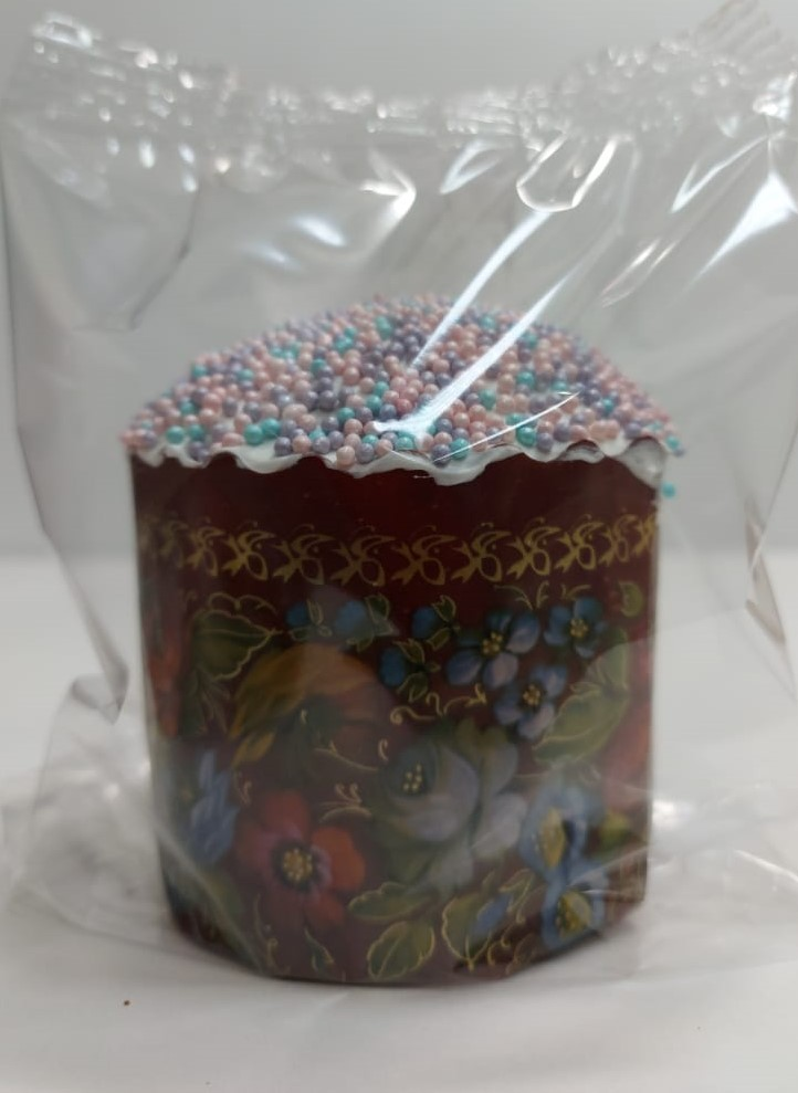 Вкус пасхального кулича – это вкус нежного теста, отборного изюма и сладкого аромата ванили. Чуть рассыпчатая структура этой сдобы придаёт ей одно важное качество – она тает во рту. Кулич увенчан плотной шапкой белой помадки, обильно посыпанной разноцветным съедобным конфетти и желтой стружкой. Эта пасхальная выпечка принесет истинное удовольствие и взрослым, и детям.