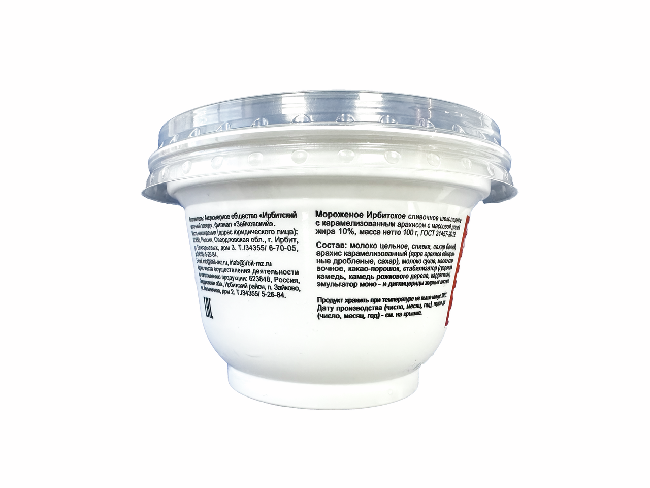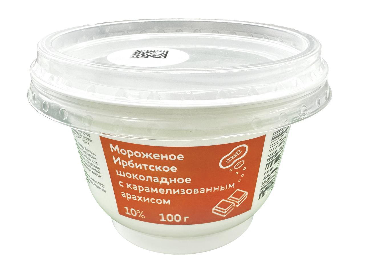 Мороженое сливочное Ирбитское Шоколадное с карамелизованным арахисом ГОСТ 10%, 100г