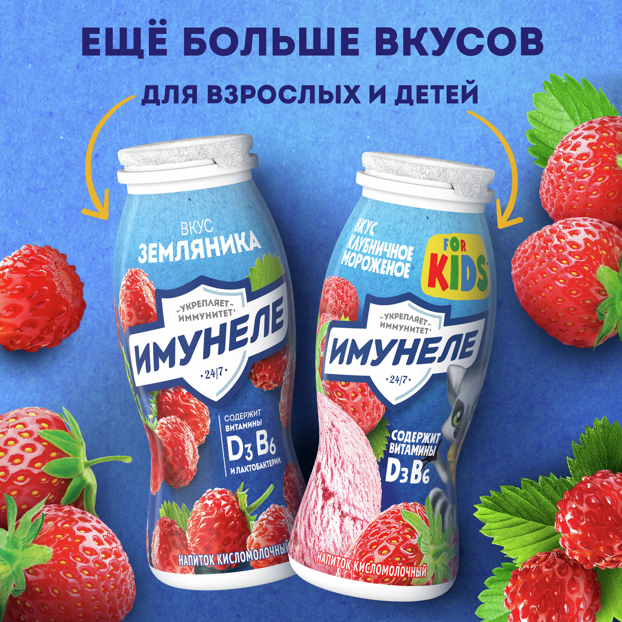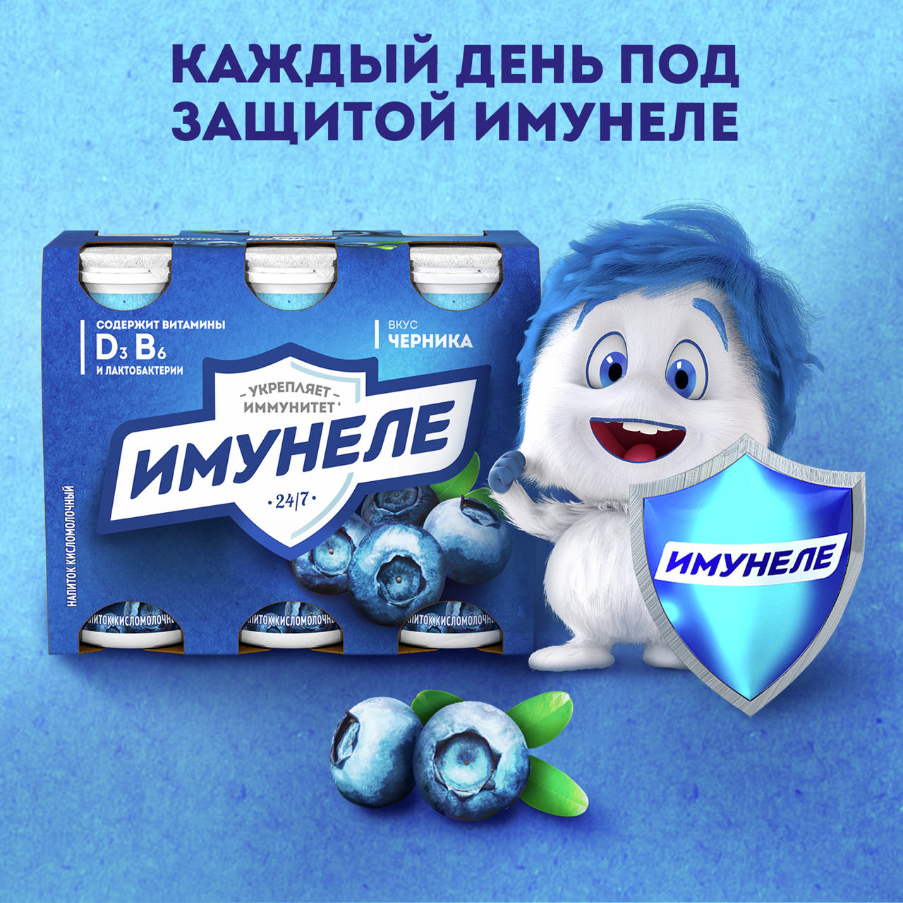 Это функциональный продукт с черничным соком, в состав которого входит уникальный сбалансированный комплекс полезных лактобактерий, витаминов и минералов. Пробиотик L.Casei нормализует микрофлору кишечника и защищает ее от микробов. L.Rhamnosus дополняет его действие, укрепляя иммунитет. Витамины E и D3 помогают организму сопротивляться инфекциям и препятствуют старению иммунной системы. Цинк противостоит простудам, а йод придает сил. Институт питания РАМН рекомендует Имунеле для ежедневного применения, особенно в холодное время года.