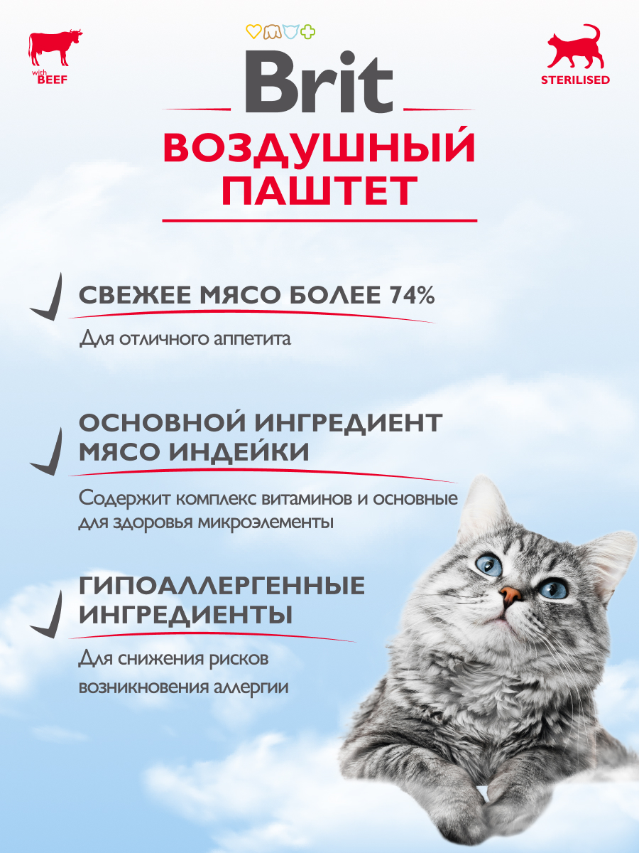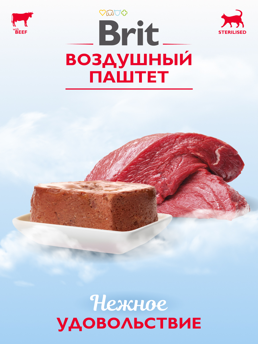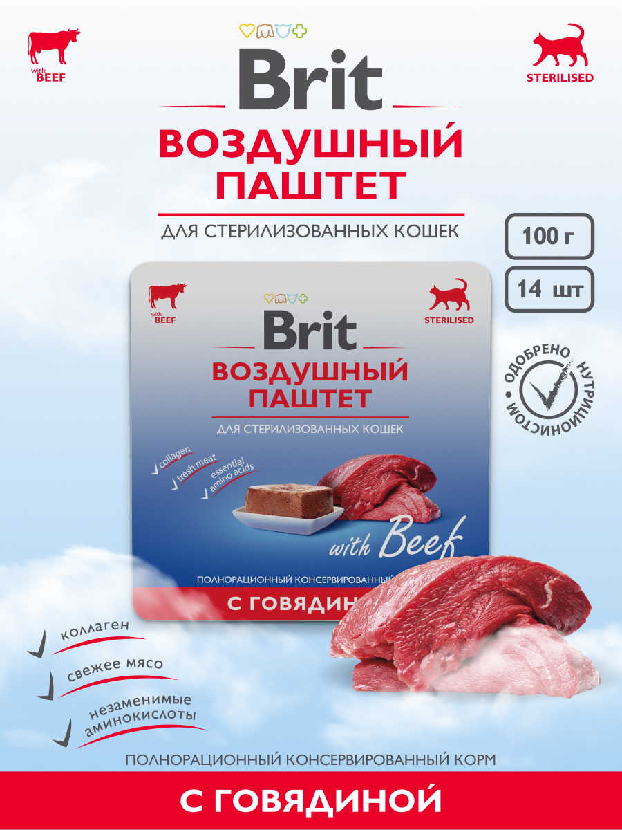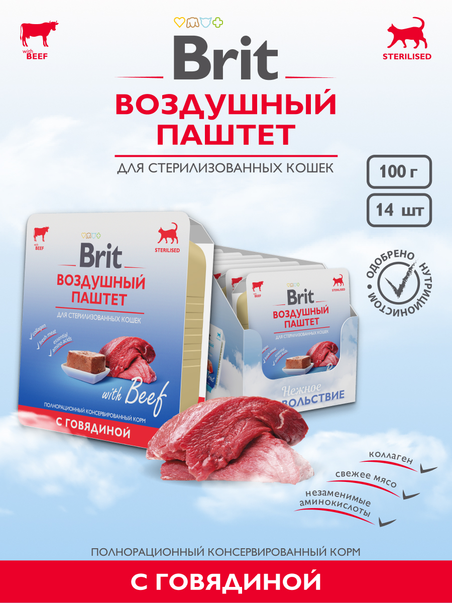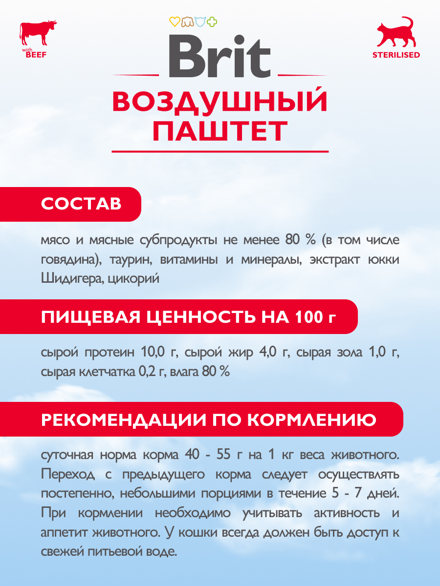 Корм влажный Brit Воздушный паштет для стерилизованных кошек говядина, 100г