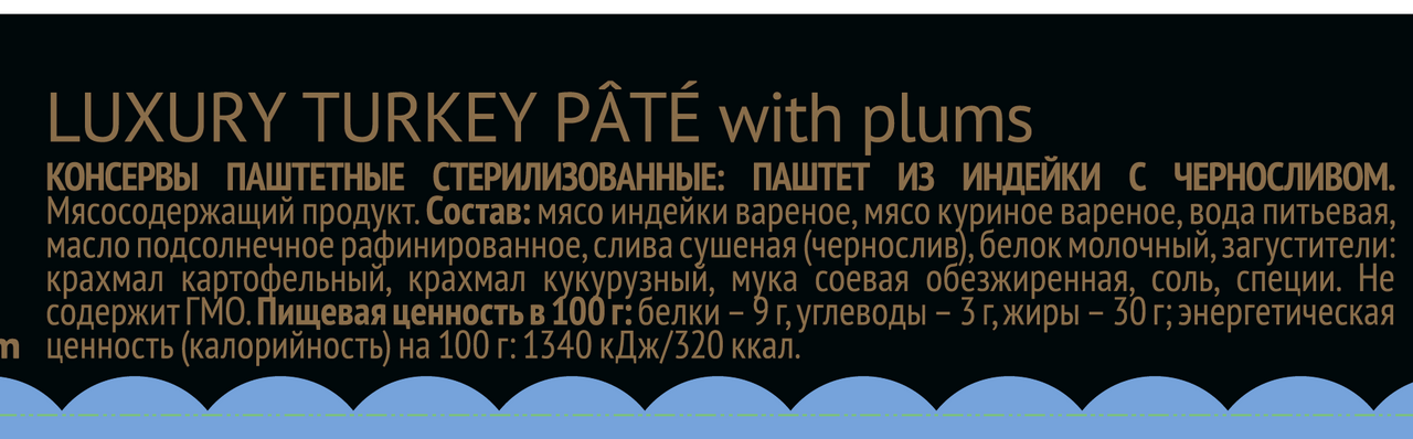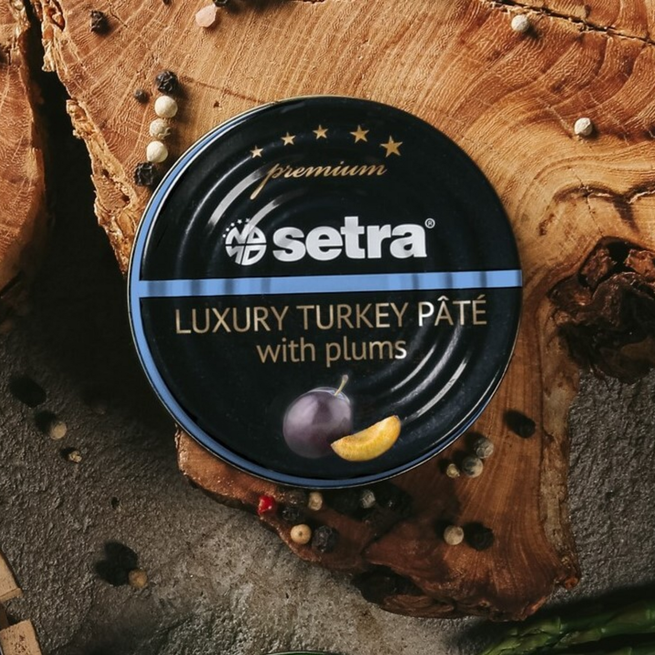 Оригинальная рецептура паштетов из линии Premium специально разработана технологами Setra для взыскательных потребителей. Мясная основа паштета из индейки дополнена кусочками чернослива для получения изысканного сладковатого вкуса. Нежный по консистенции, с пикантным вкусом и с приятным запахом, без искусственных красителей и ГМО. Не содержит свинину, имеет сертификат Halal.