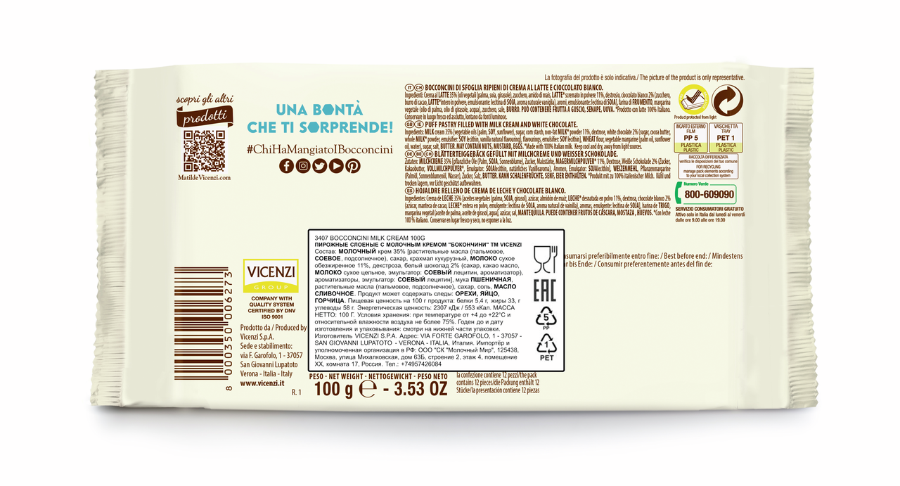 Печенье слоеное Vicenzi Bocconcini с молочным кремом, 100г
