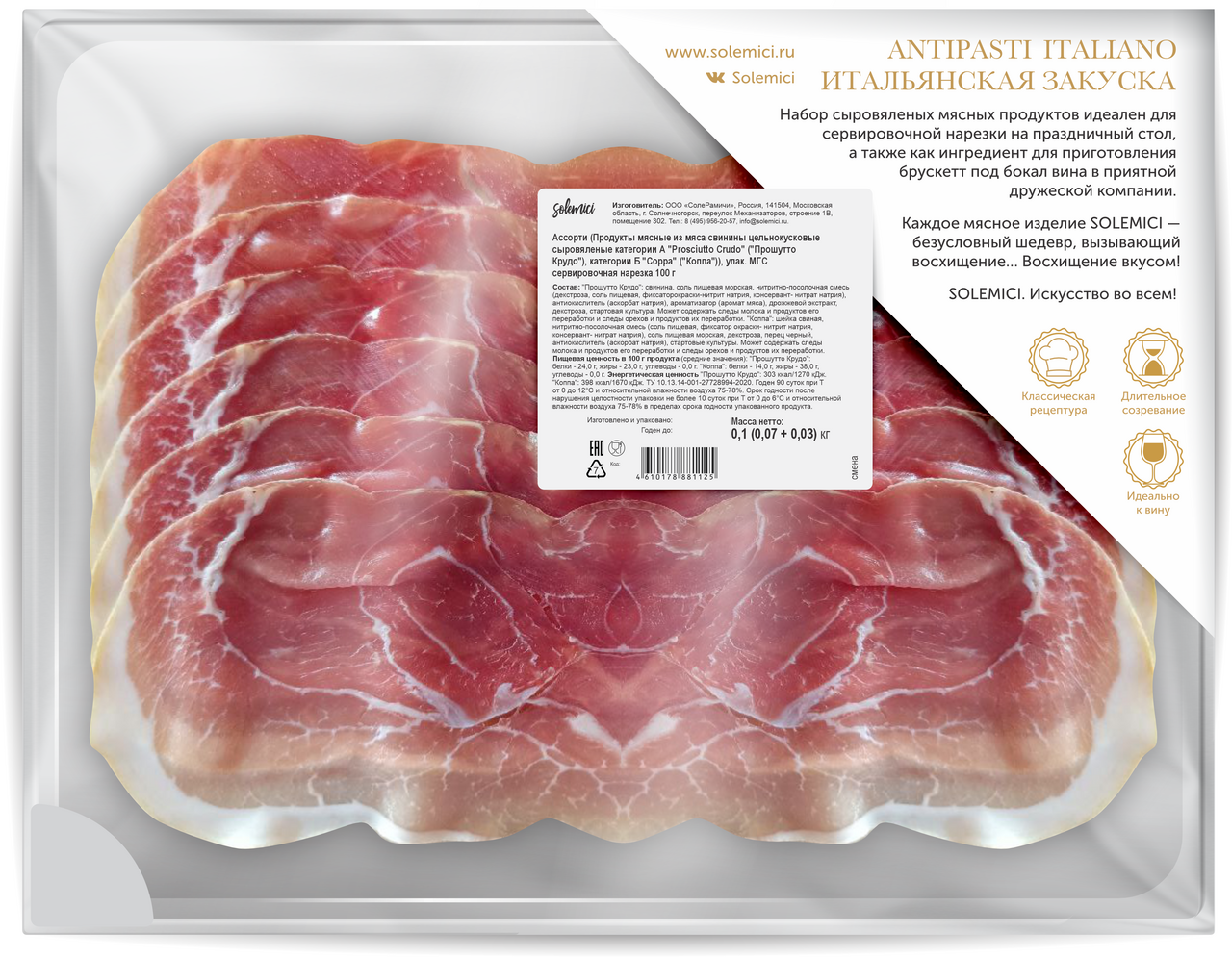 Прошутто Solemici Crudo&Coppa нарезка, 100г