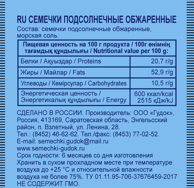 Семечки подсолнечные обжаренные, соль.