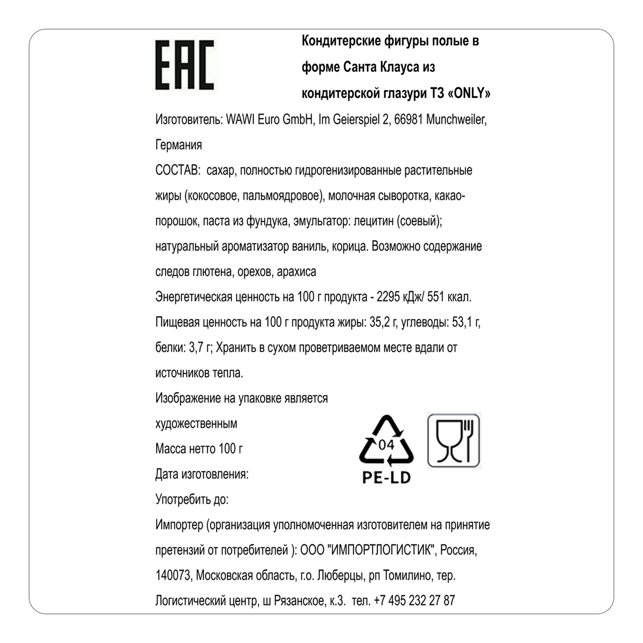 Подарите себе и близким немного настоящего волшебства с новогодними шоколадными фигурками от австрийского бренда Only.Этот праздничный набор 100г изысканного молочного шоколада воплощает атмосферу Рождества и Нового года - в нём собраны фигурки в виде любимых зимних символов, которые наполняют каждый момент теплом, уютом и сладкой радостью.Сделанные с вниманием к деталям, фигурки не только радуют глаз, но и восхищают вкусом - нежный, тающий во рту молочный шоколад изготовлен по классическим австрийским рецептам, с использованием отборных ингредиентов.Набор идеален для подарка, украшения праздничного стола или уютного зимнего вечера с чашкой какао.Only превращает традиции в удовольствие - пусть каждый кусочек напомнит вам, что чудеса рядом.