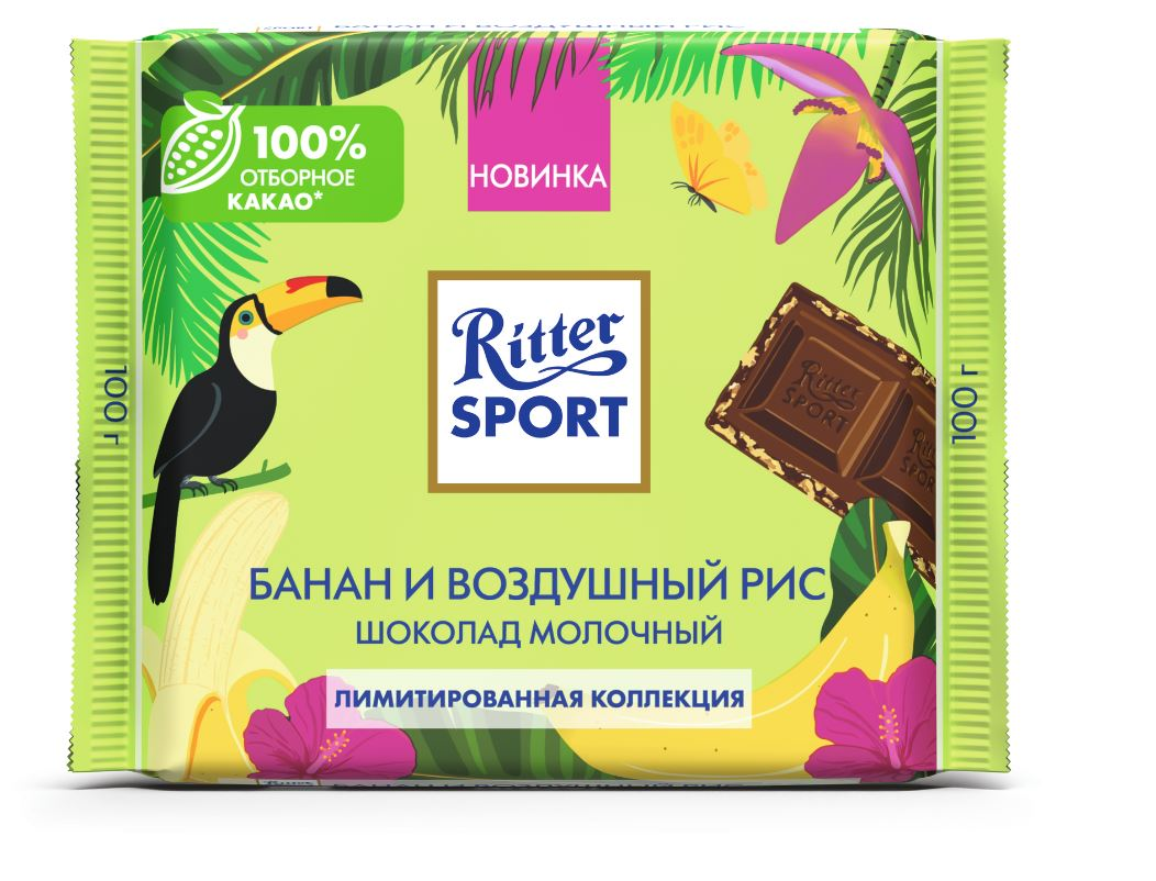 Шоколад Ritter Sport банан и воздушный рис, 100г