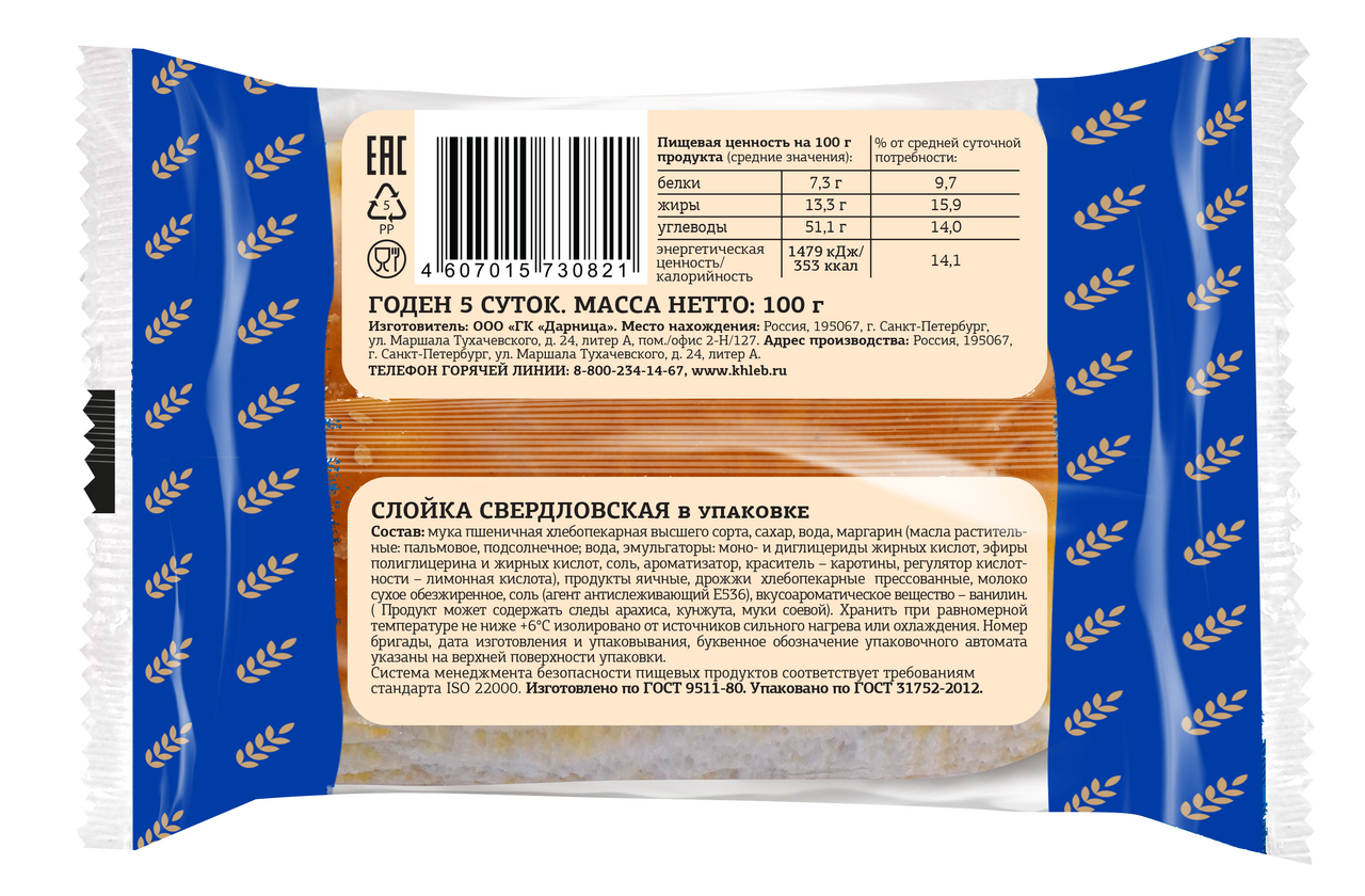Изделие хлебобулочное сдобное дрожжевое, посыпанное отделочной крошкой. Вкусное хлебобулочное изделие, которое готовится из ароматного слоеного теста. Добавление оригинальной посыпки делает вкус выпечки восхитительным. Классическая Свердловская слойка идеально дополнит чаепитие в кругу родных и близких. Булочка идеально подходит для вкусного перекуса в течение дня.