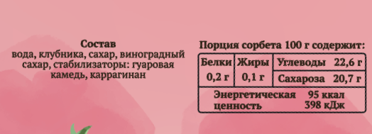 Вода, клубника, сахар, виноградный сахар, стабилизаторы: гуаровая камедь, каррагинан.