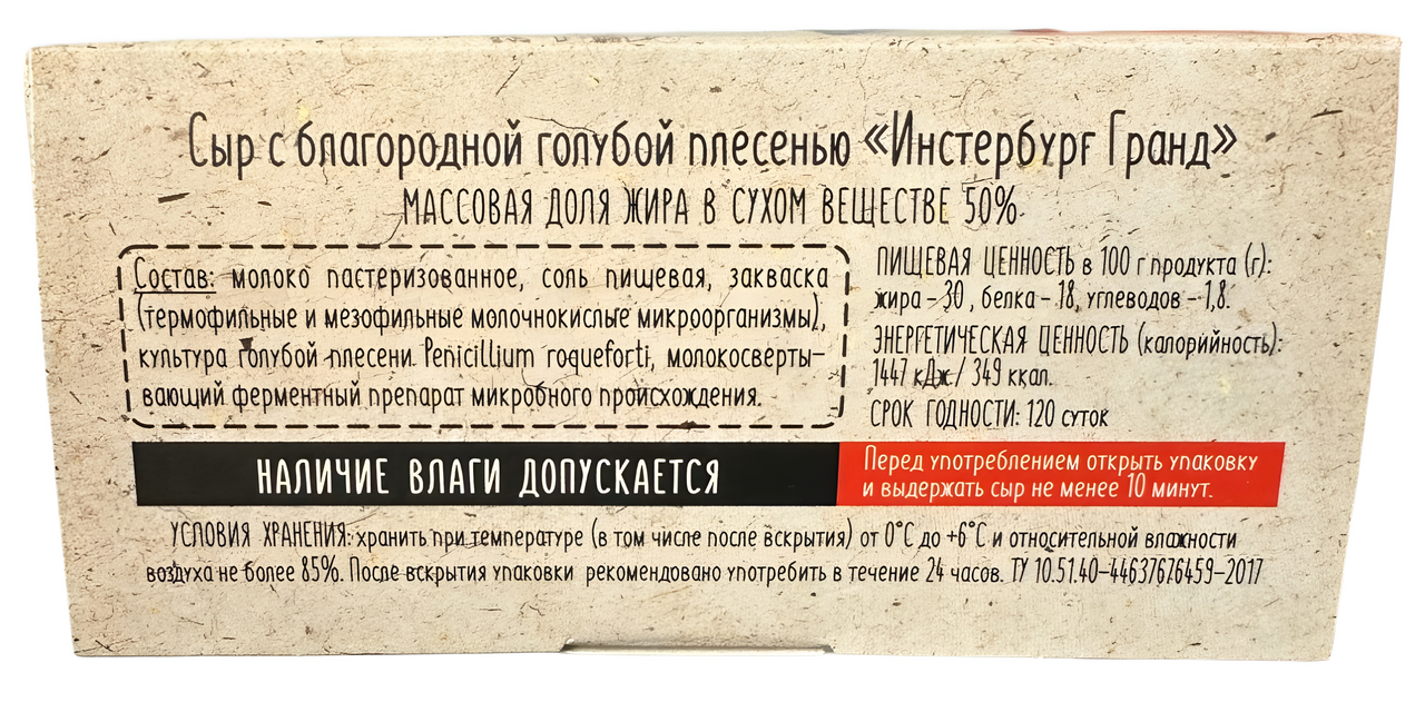 Сыр Вюрд Инстербург Гранд с голубой плесенью 50%, 100г