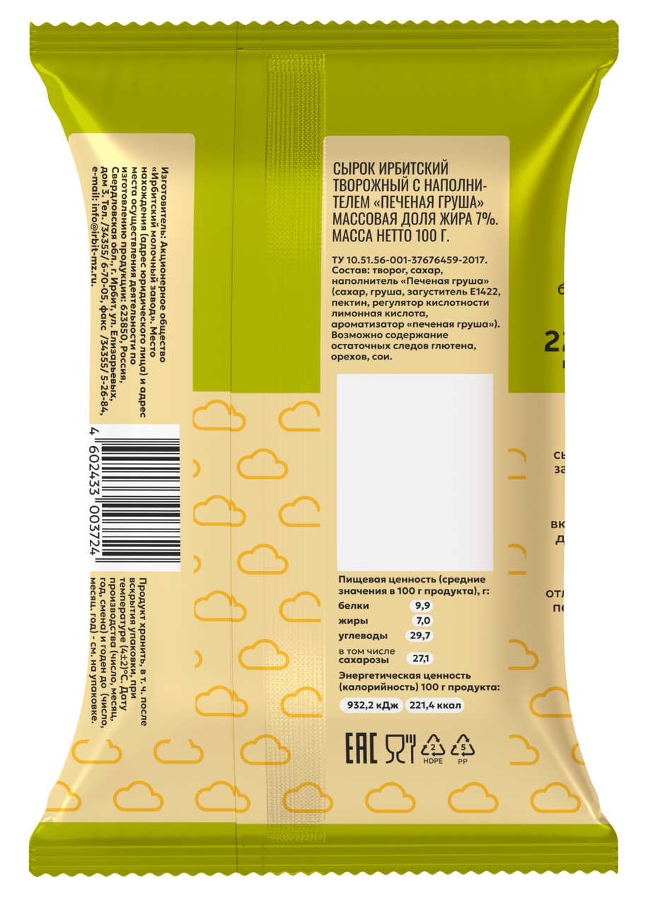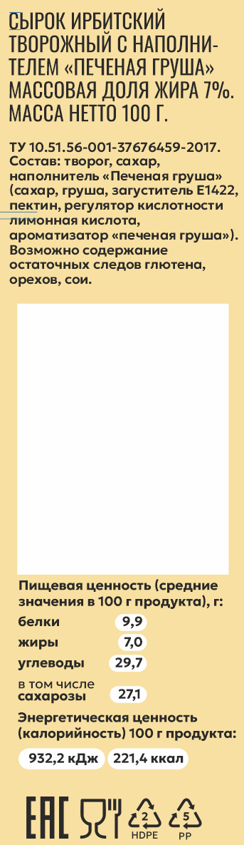 Сырок творожный Ирбитское с наполнителем печеная груша 7%, 100г