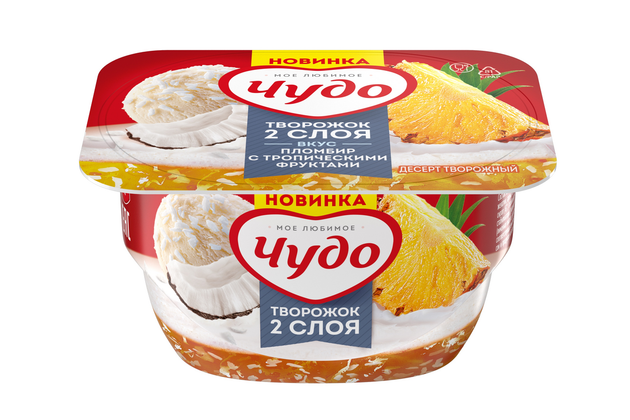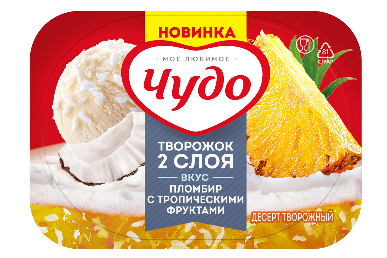 Десерт творожный Чудо пломбир-тропический фрукт 4.4%, 100г