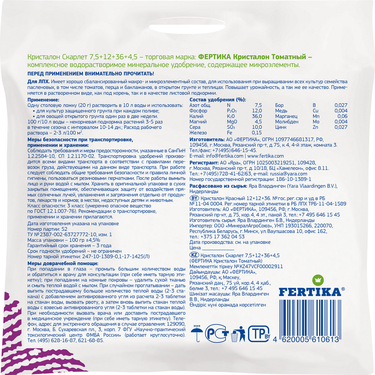 Удобрение Fertika Кристалон томатный, 100г