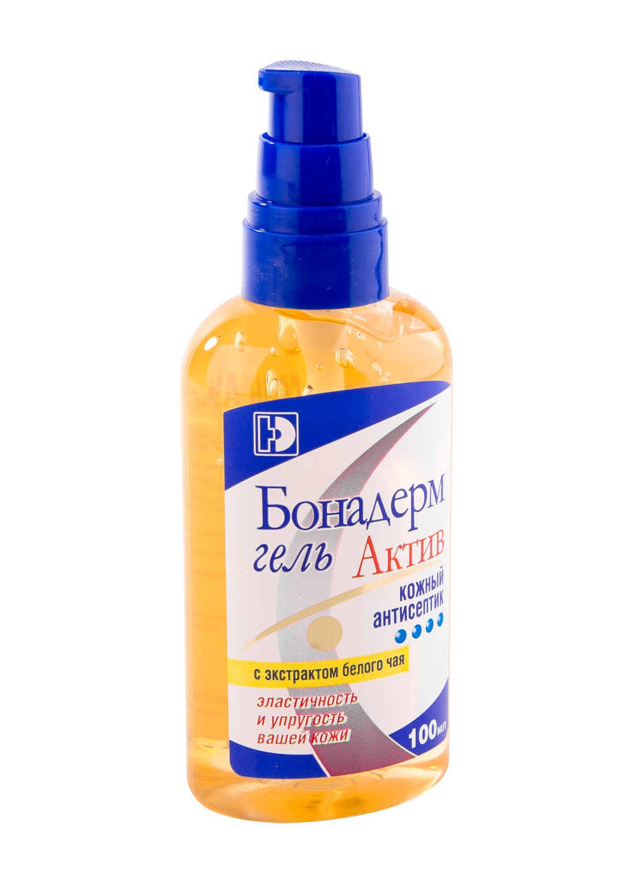 Бонадерм гель Актив. Кожный антисептик с экстрактом белого чая. Эластичность и упругость вашей кожи. Назначение: гигиеническая обработка рук и профилактическая обработка ступней ног.