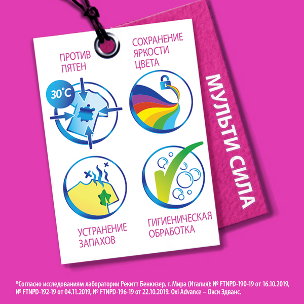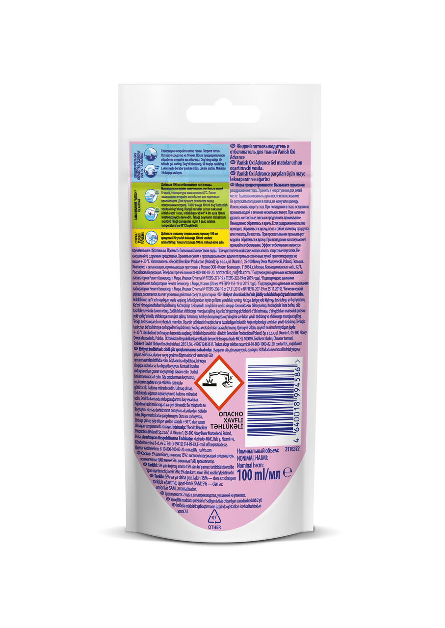 Мультифункциональное средство без хлора для усиления качества стирки белых тканей. Теперь Vanish не только эффективно удаляет пятна, но и сохраняет белизну вещей даже после 50 стирок, избавляет от неприятного запаха и производит гигиеническую обработку. Удаляет сложные загрязнения и въевшиеся пятна от вина, макияжа, кофе, жирных соусов.
