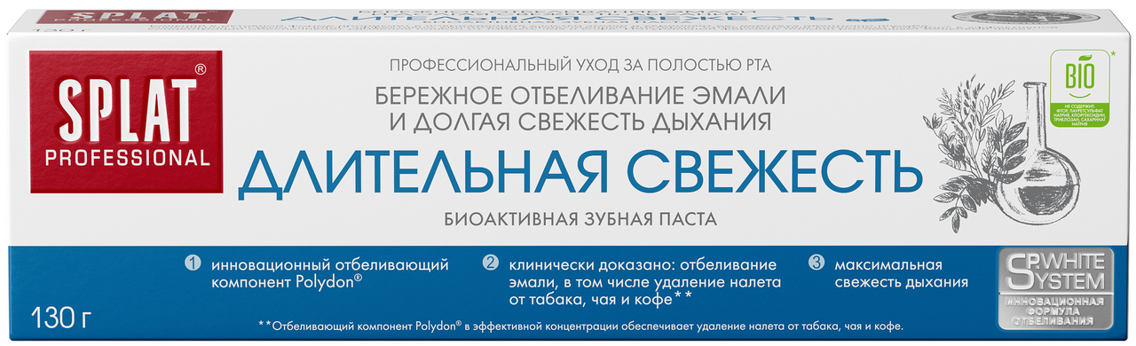 Инновационная зубная паста с наногидроксиапатитом, ионами цинка и растительными экстрактами предназначена для максимального эффекта свежести полости рта, надежной защиты от кариеса и укрепления эмали. Суперсвежая отбеливающая зубная паста действует эффективно благодаря синергии нанотехнологий и высокой активности природных компонентов. Отбеливающий компонент Polydon в высокой концентрации обеспечивает удаление налета от табака, чая и кофе. Натуральный фермент папаин расщепляет белковый налет. Ионы цинка в сочетании с природным антисептиком тимолом блокируют развитие болезнетворных бактерий, вызывающих неприятный запах изо рта. Инновационная система Lucatol уничтожает кариесогенные бактерии.