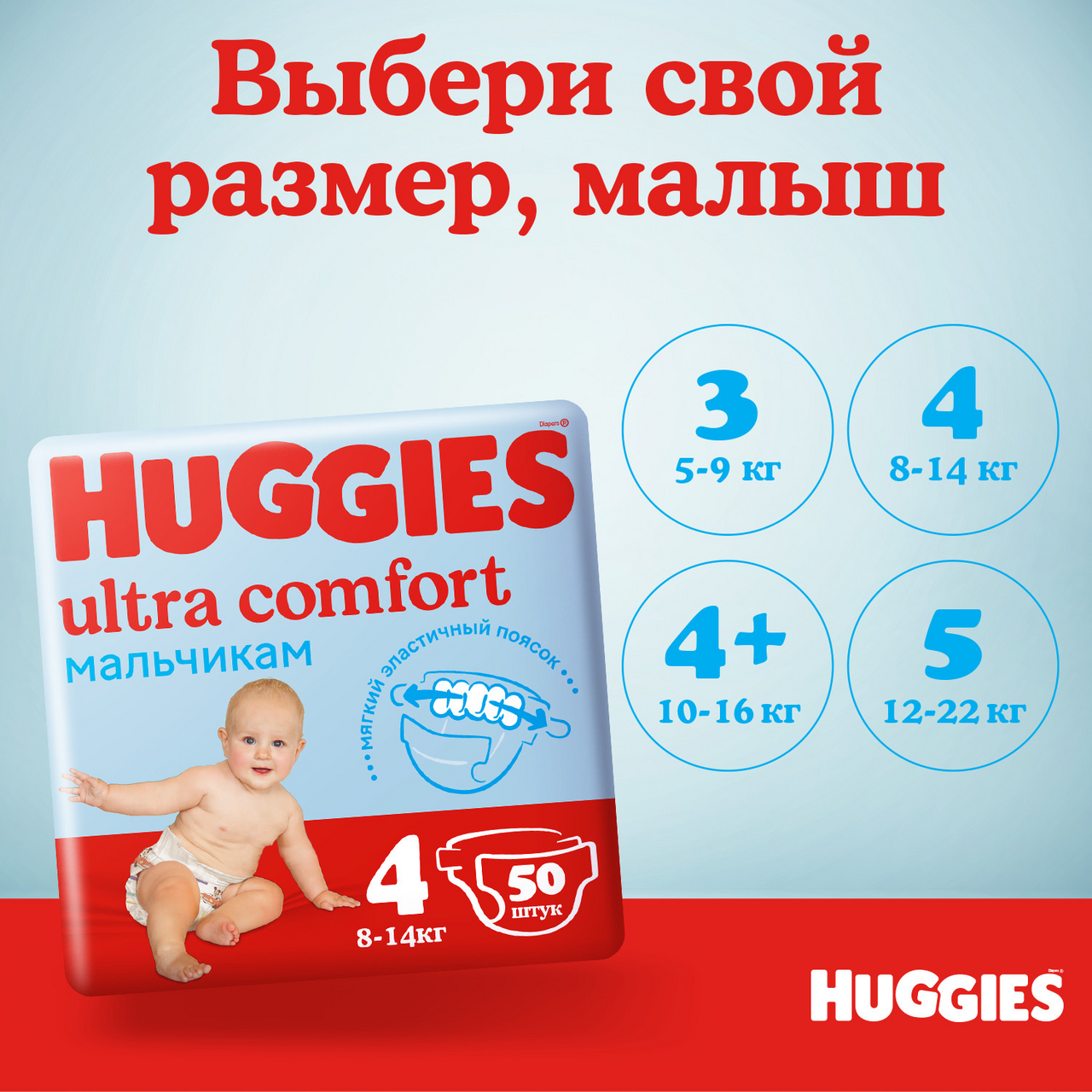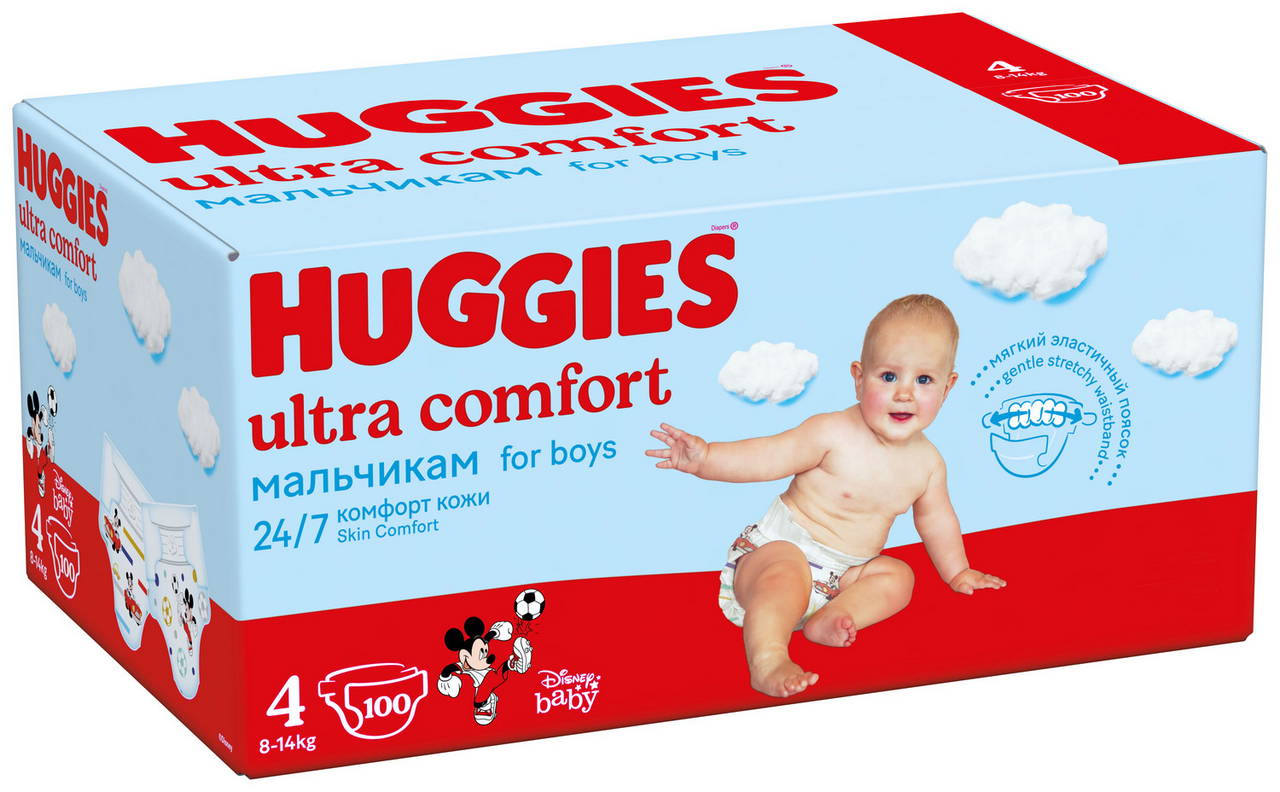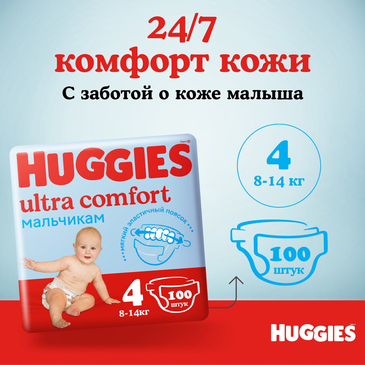 Подгузники Huggies Ultra Comfort для мальчиков 4 размер 8-14кг, 100шт