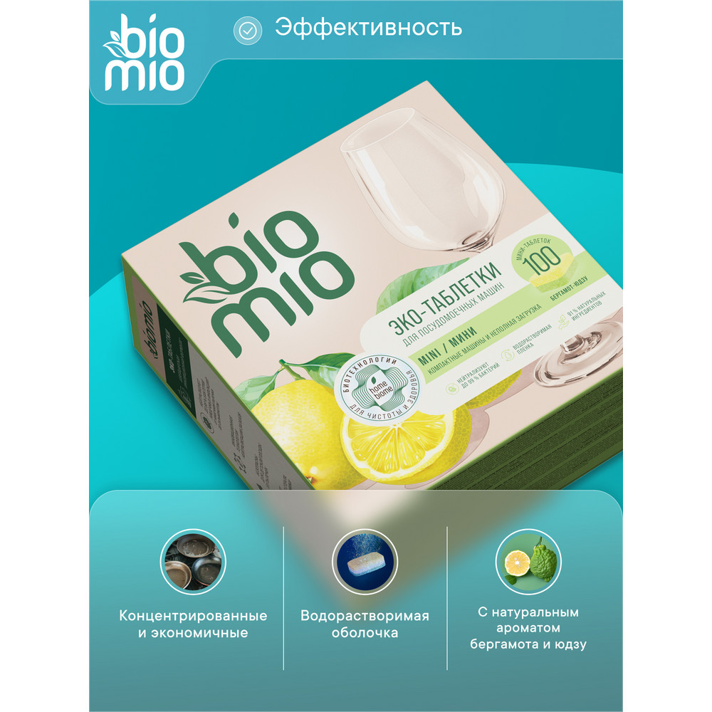 Мини-таблетки для посудомоечной машины BioMio бергамот и юдзу, 100шт