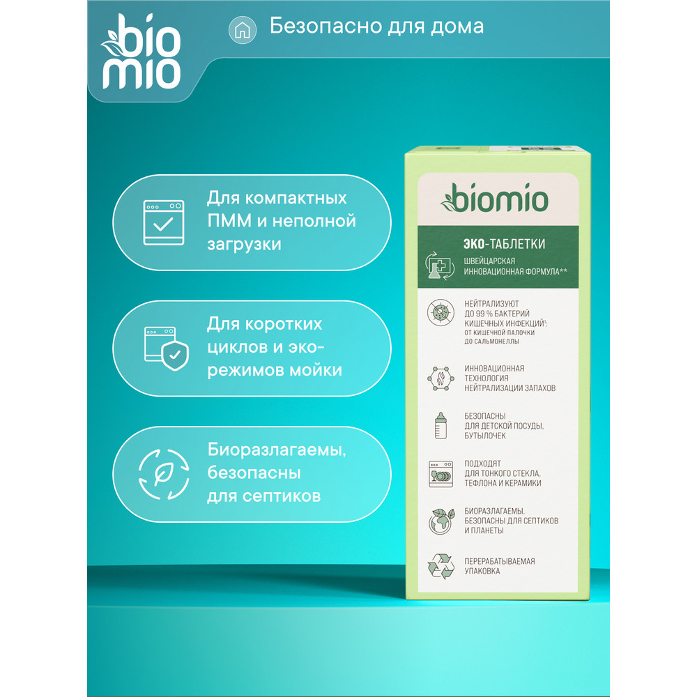 Экологичные быстрорастворимые таблетки BioMio Bio-Tabs с эфирными маслами бергамота и юдзу для посудомоечных машин на 91% состоят из натуральных компонентов. Идеально подходят для неполной загрузки и компактных машин. Благодаря инновационной технологии HomeBiome в составе устраняют до 99% бактерий кишечных инфекций (от кишечной палочки до сальмонеллы) и нейтрализуют неприятные запахи. Безопасны для детской посуды, бутылочек. Биоразлагаемы, безопасны для септиков.