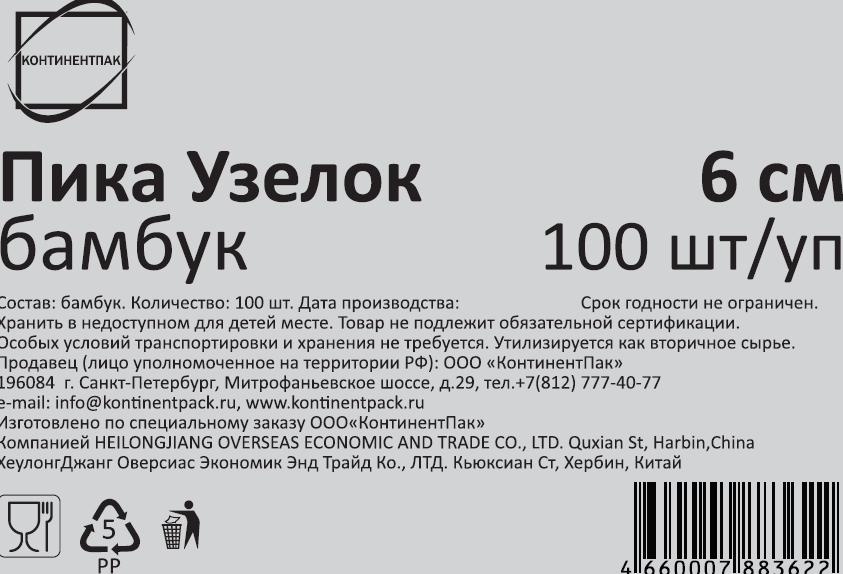 Пика Континентпак Узелок бамбуковая 6см, 100шт