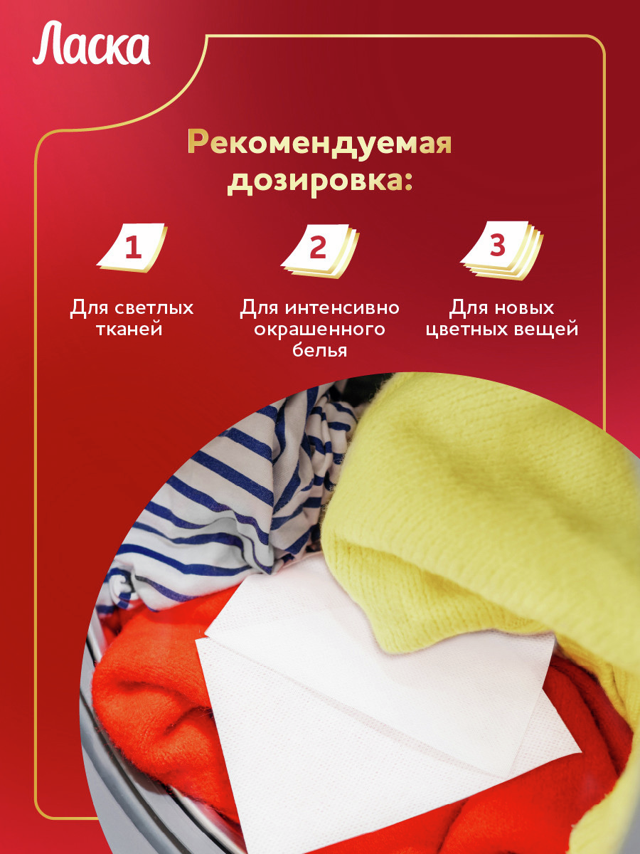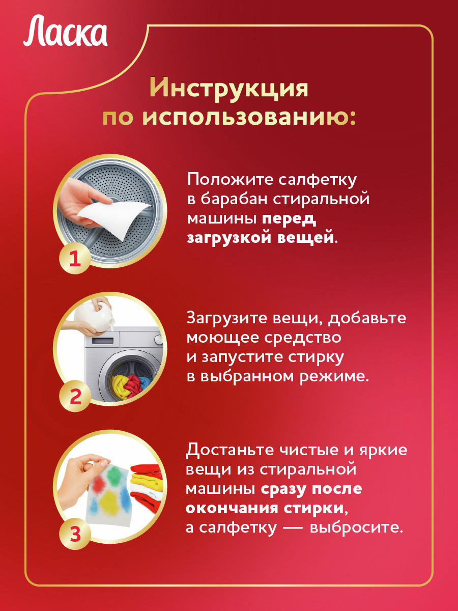 Это уникальные одноразовые салфетки для предотвращения перехода цвета и эффективной защиты цветного и белого белья во время смешанной стирки. Надежная защита цветного и белого белья от окрашивания.