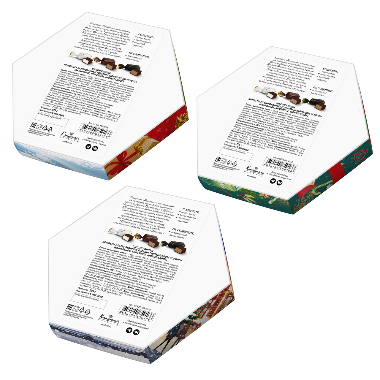 Стильная, коробка конфет скрывает в себе удивительный вкус настоящего шоколада c нежнейшим суфле, такой подарок станет прекрасным дополнением к торжеству или сделает будний день ярче. Конфеты Конфаэль изготовлены из элитных сортовых какао-бобов категории Fino de Aroma сортов: Criollo и Trinitario.