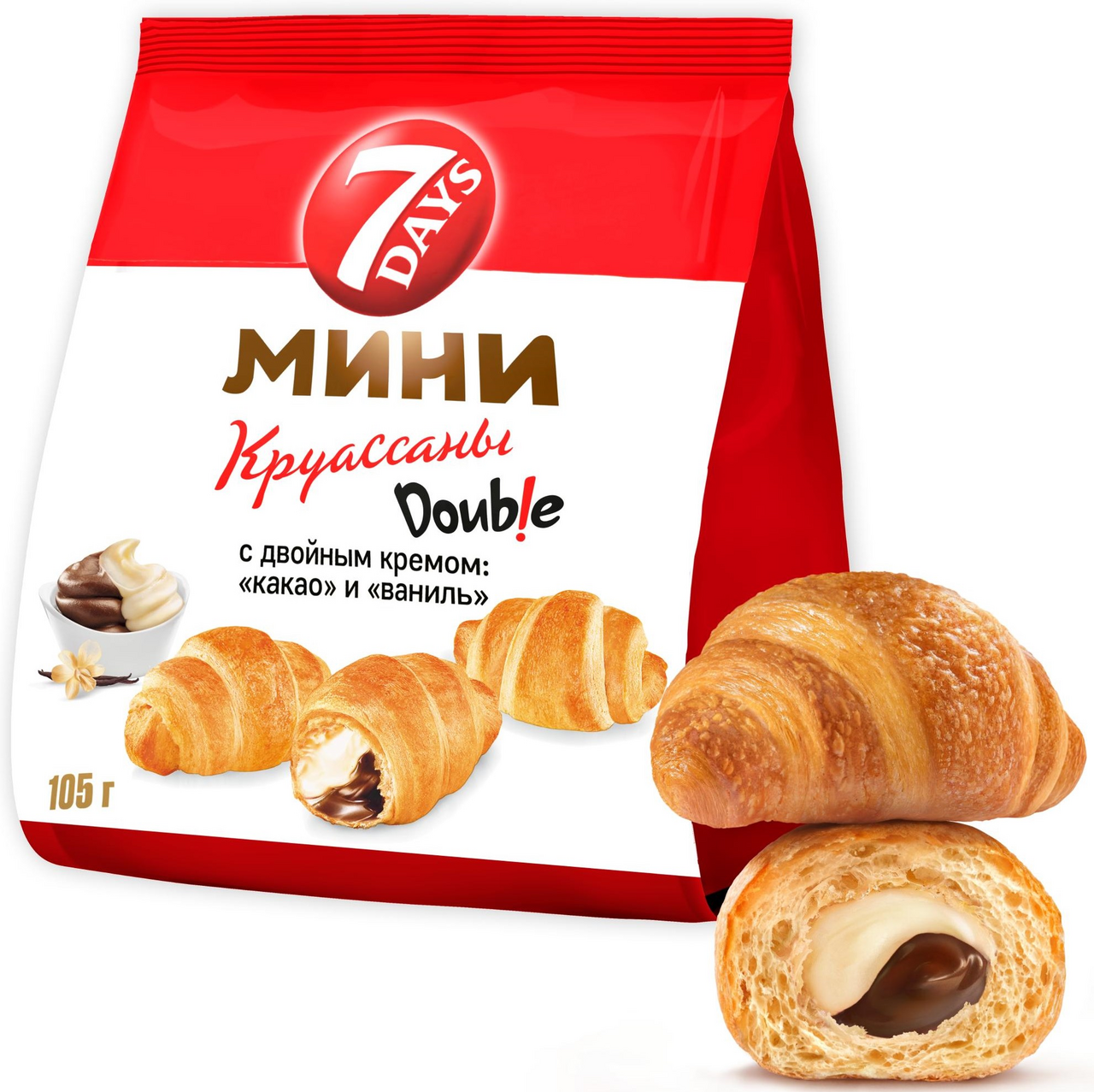 Мини-круассаны 7 Days Double c двойным кремом какао и ваниль, 105г