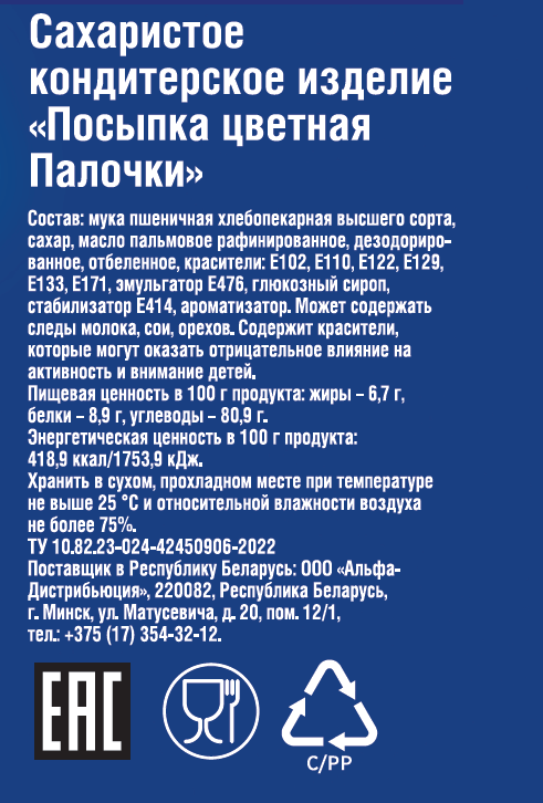 Посыпка Dr.Bakers палочки, 10 г представляет собой украшения небольших размеров. С ее помощью можно воплотить в реальность различные фантазии, создав красочные и насыщенные рисунки, логотипы и даже надписи. Благодаря таким сладким фигуркам десерты приобретают завершенность. Ими можно украсить торты, пирожные, кексы, куличи. Для удобства нанесения на поверхность можно воспользоваться шаблонами.