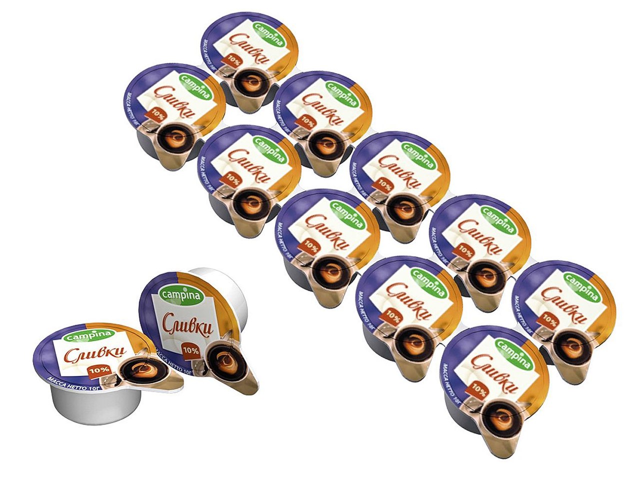 Campina Сливки для кофе 10% порционные 20 упаковок х 10 шт