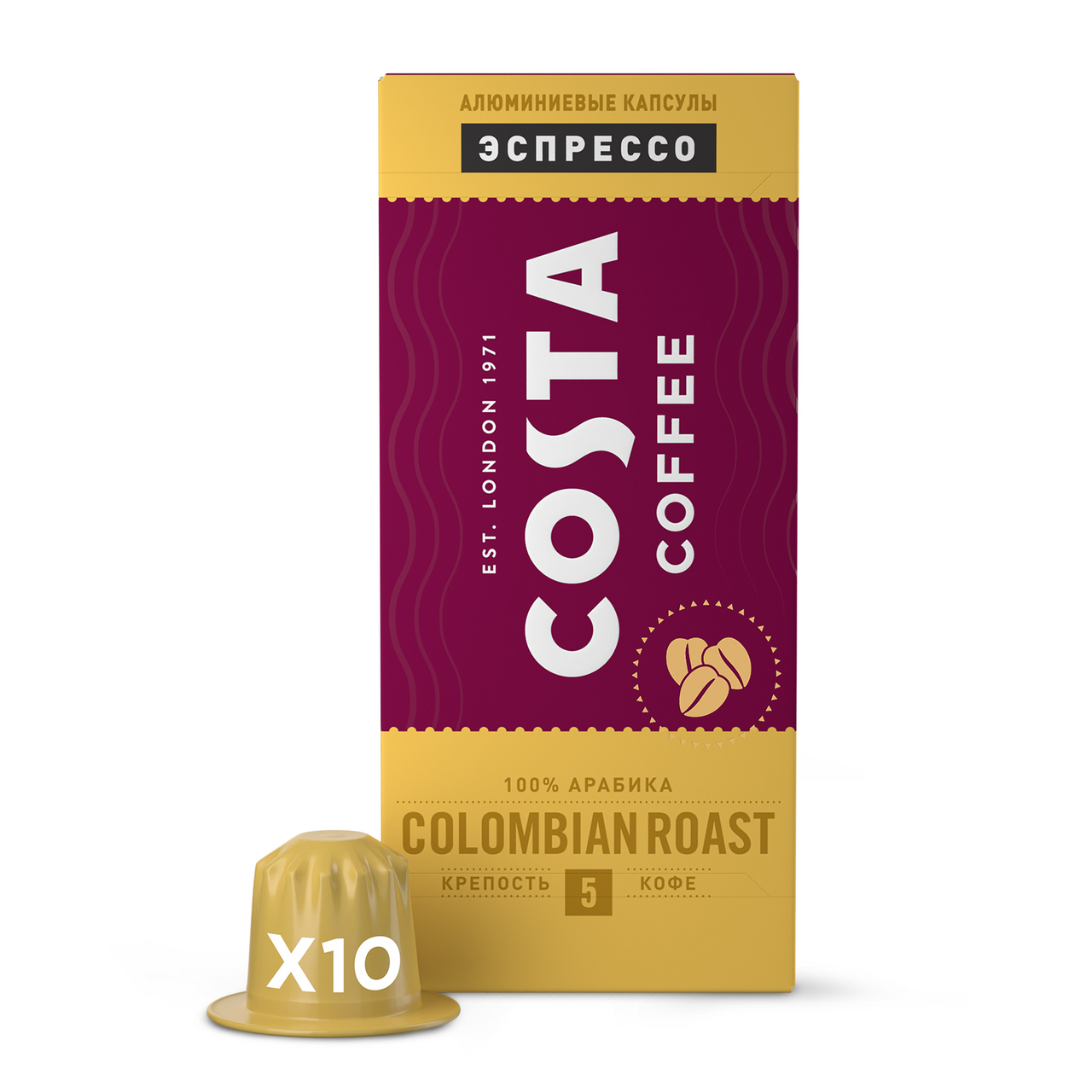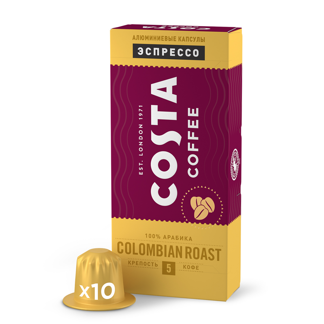 Кофе в капсулах Costa Coffee Colombian Roast Espresso средней обжарки для кофемашин Nespresso 10шт, 55г