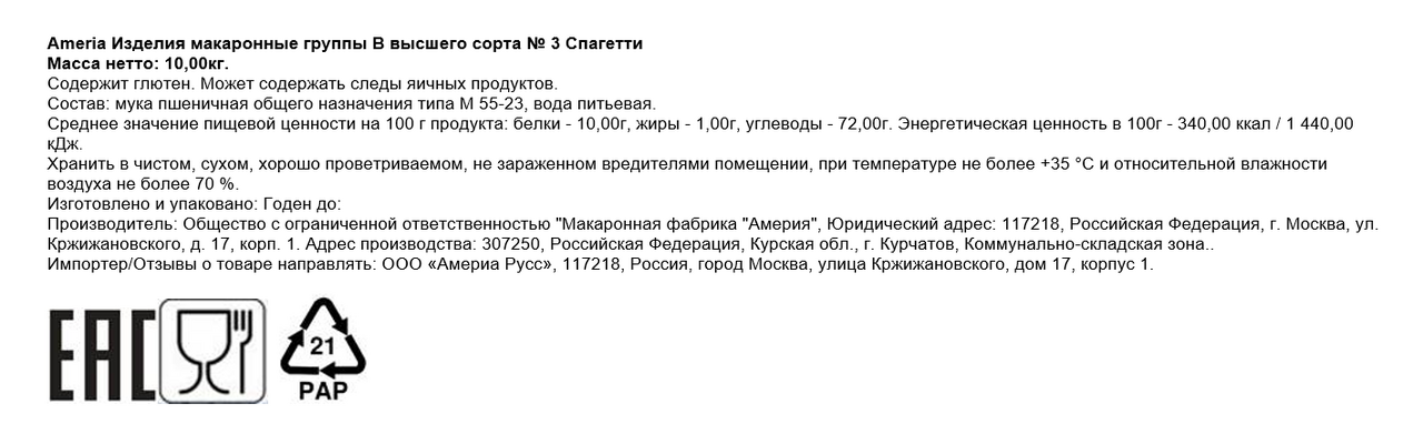Натуральный продукт, приготовленный по классической рецептуре макаронного теста: пшеничная мука высокого качества и чистейшая вода. Благодаря пшенице твердых сортов макароны прекрасно сохраняют форму и вкусовые свойства при варке. Разнообразие размеров, форм и форматов – это кулинарный простор для искушенных гурманов и затейливых хозяек. Они отлично подойдут для подачи с мясом и овощами.
