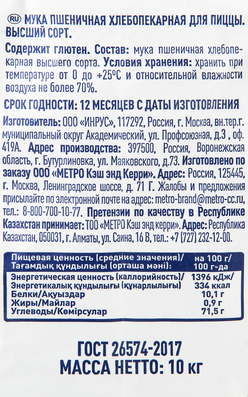 METRO Chef Мука для пиццы высший сорт, 10кг