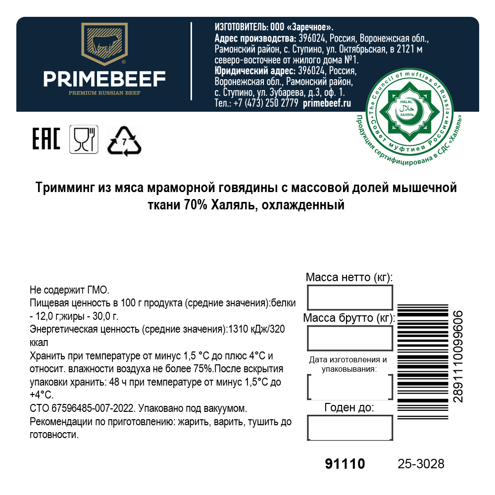 Тримминг говяжий Primebeef Халяль охлажденный, ~10кг