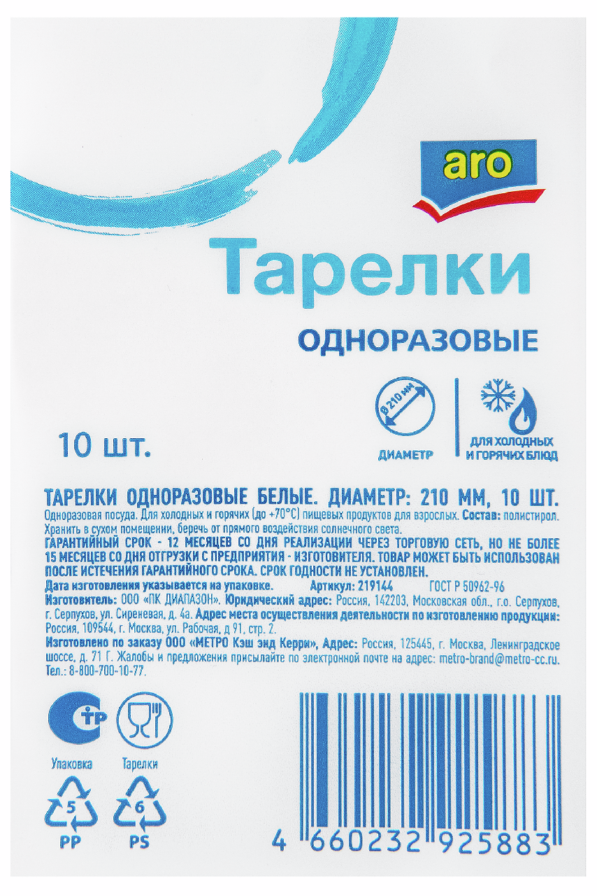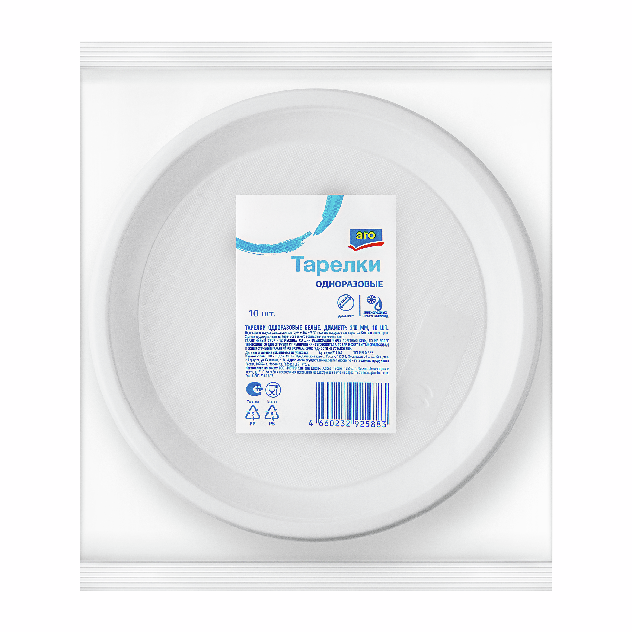 aro Тарелка одноразовая пластиковая белая 21см, 10шт