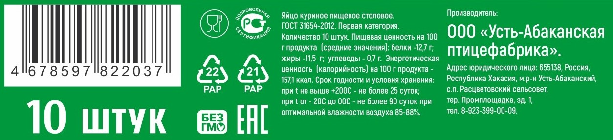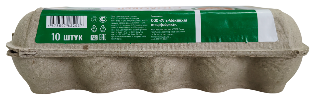 Яйцо куриное Усть-Абаканская птицефабрика С1, 10шт