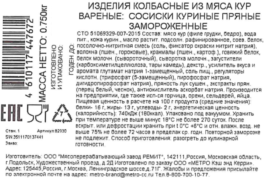 METRO Chef Сосиски куриные пряные замороженные, 750г