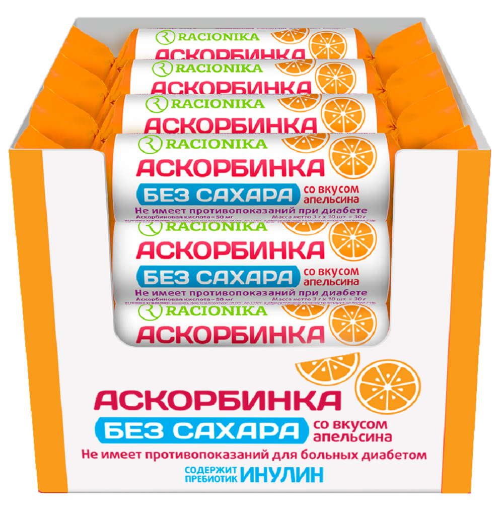 Аскорбинка Racionika Апельсин без сахара (3г х 10шт), 30г