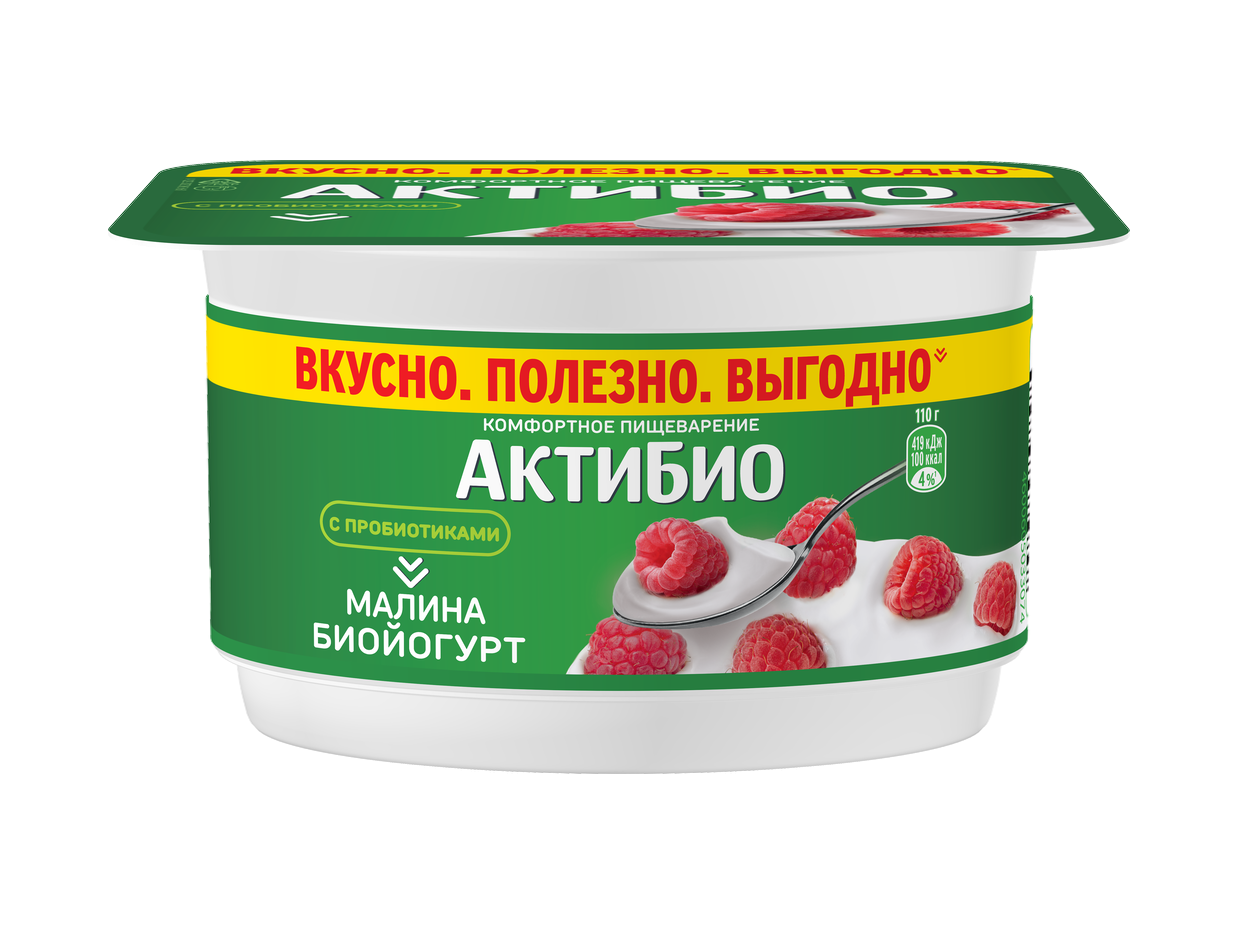 Кисломолочный продукт с ароматной малиной. В продукции содержатся бифидобактерии ActiRegularis, которые положительно влияют на работу кишечника и отвечают за синтез в кишечнике витамина В9. Биойогурт содержит комплекс витаминов группы В, А, С, а также особый белок – лактоферрин, принимающий участие в функционировании иммунной системы человека. В меру сладкий прекрасно подходит как для завтрака, так и для легкого перекуса в течение дня. его добавляют в творог, коктейли, заправляют им салаты.